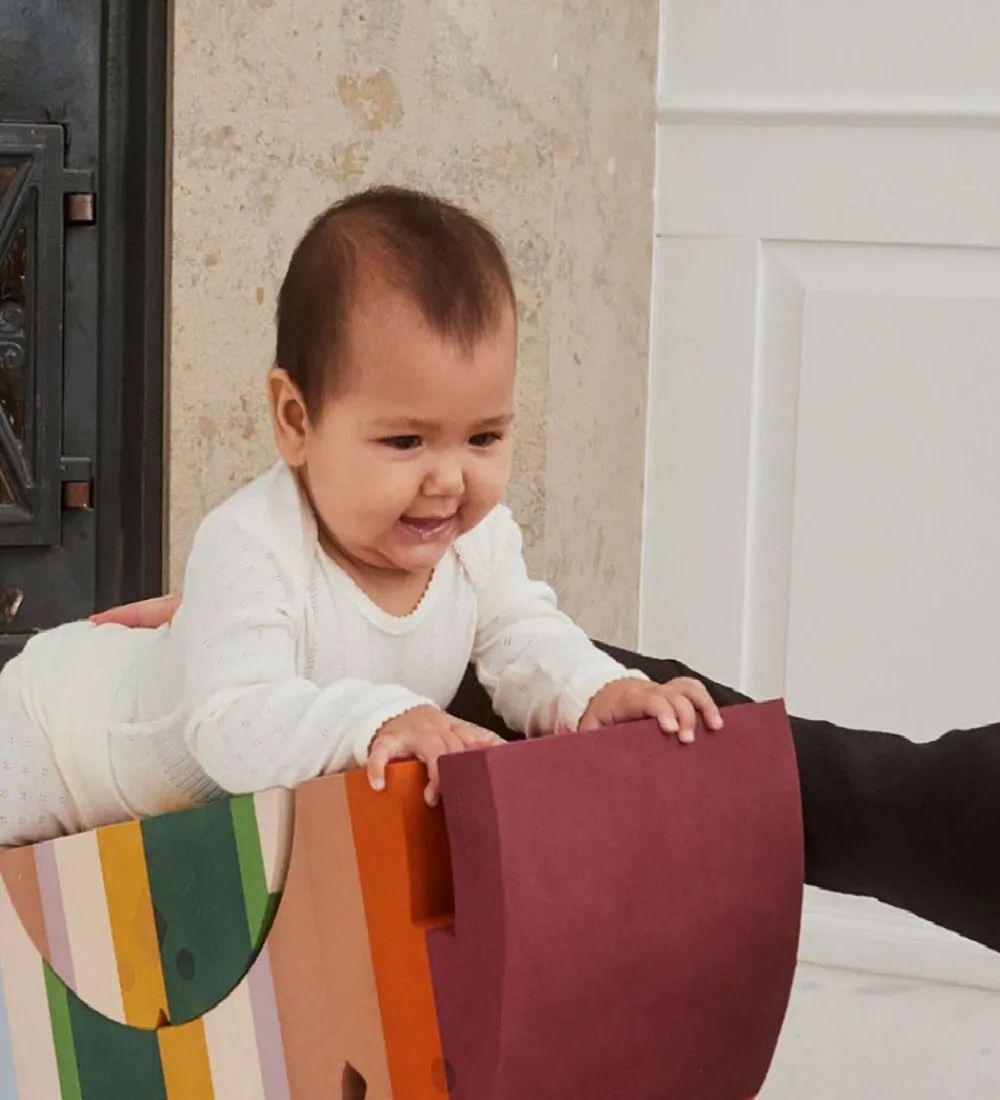 Elefanten et dekorativt og super flot børnemøbel, der samtidig kan bruges til at lege med. Det lille barn kan ligge hen over elefantens buede ryg, så ryg og mavemuskulaturen trænes og styrkes, eller det større barn kan hoppe ned fra tumledyret. Man kan også vende den om, så det bliver en sjov vippe, og de vovemodige kan stå på den gyngende elefant og prøve at holde balancen. Dette bObles møbel indbyder til sjov og fantasifuld leg for børn i alle aldre.