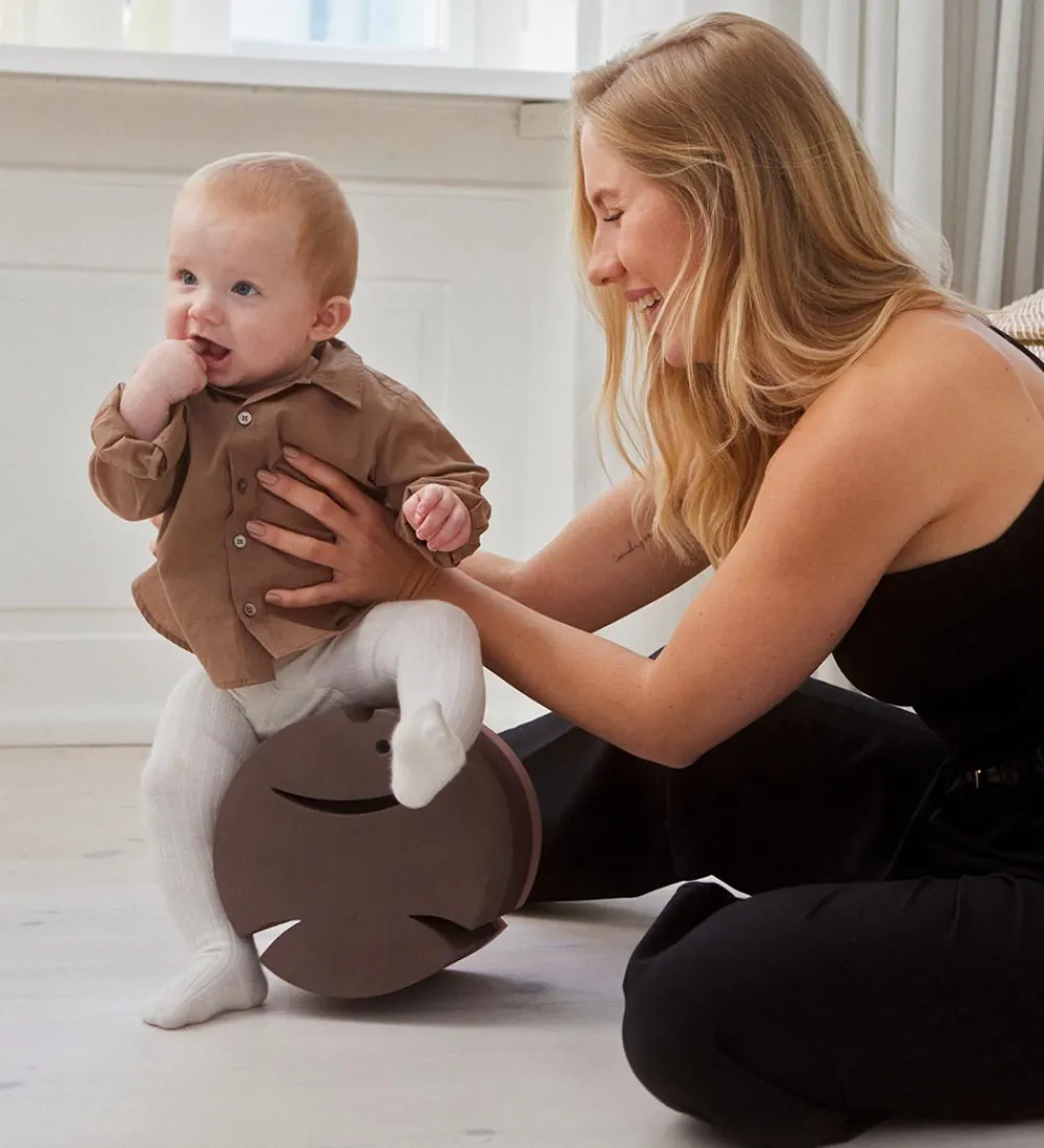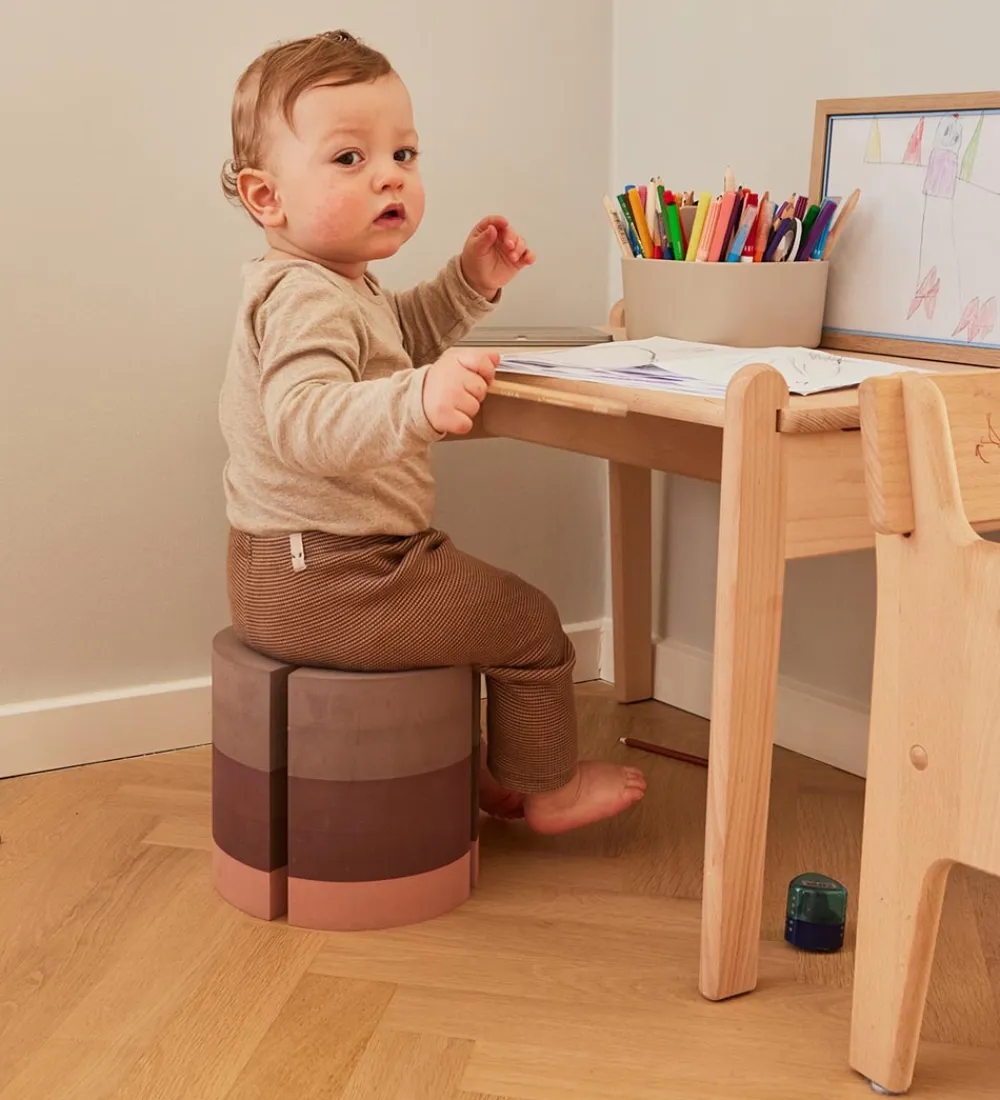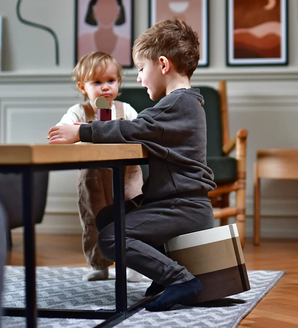 Fisken er rund med flade ender. Den er et flot og smart møbel, der kan bruges på mange forskellige måder. Det lille barn kan rulle fisken af sted og derefter forsøge at fange den, et større barn kan hoppe ud fra den, og det rigtig dygtige barn kan stå på den buede side og prøve at holde balancen. Man kan også forsøge at stable mange fisk til et højt tårn.