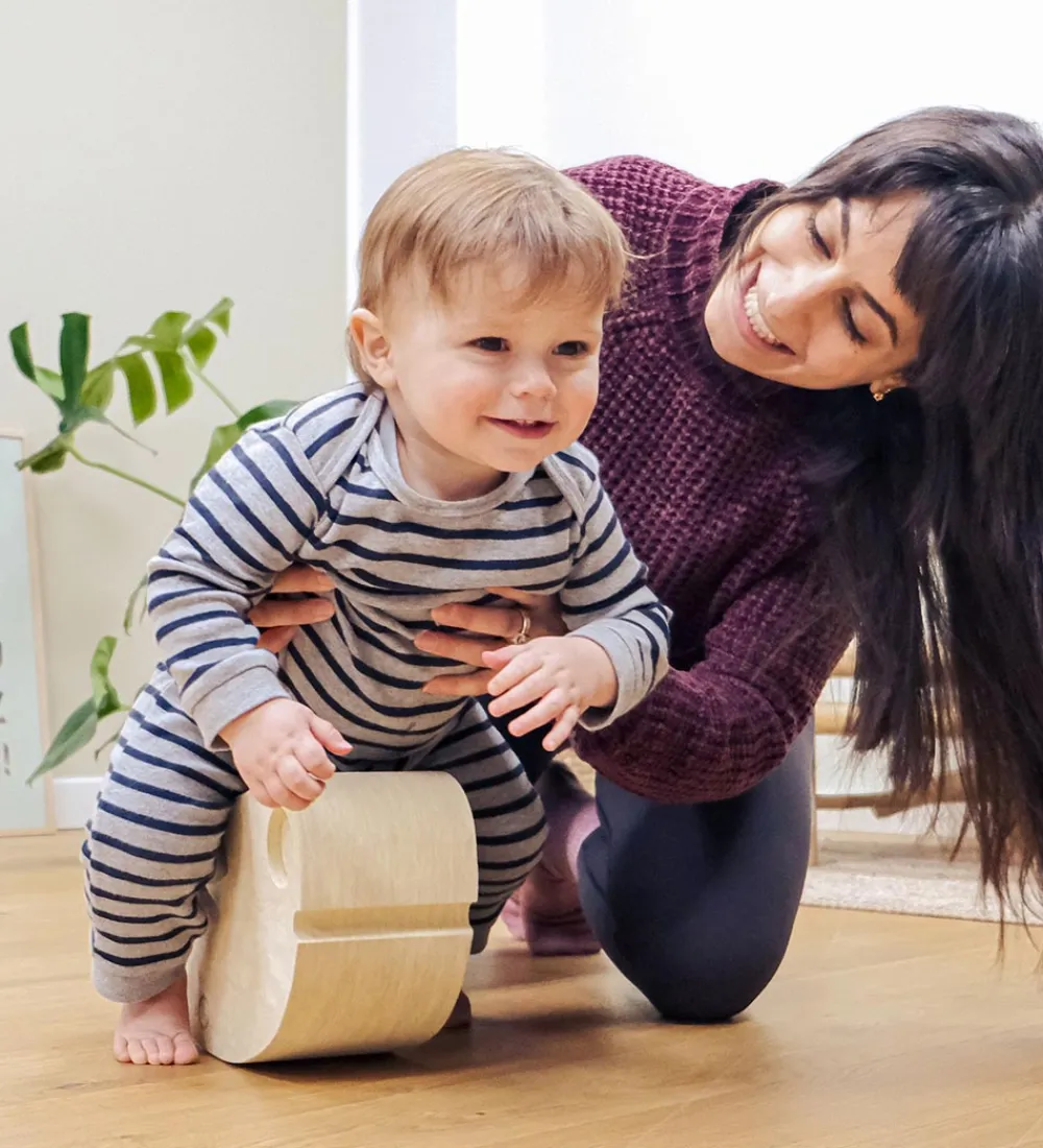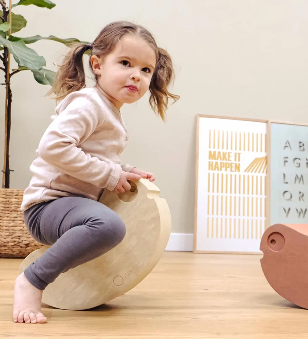 Ællingen har en buet form, så den er lige til at sidde og gynge på. De større børn kan også vove sig op at stå på den og forsøge at holde balancen. Hvis man vender ællingen om, bliver den til en lille bro, som man kan glide hen over, og de allermindste kan ligge hen over ryggen, så rygmusklerne bliver trænet.