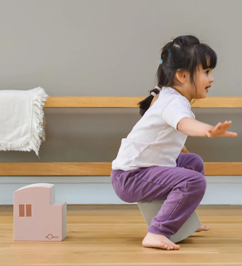 bObles tumlemøblet er dekoreret som et hus, og det er fladt i bunden, og i toppen er det buet. Det kan bruges som en lille skammel, eller som en del i tumlelege eller balancelege, og sammen med de andre figurer i serien kan man bygge sin egen by. Så er der lagt op til at slippe fantasien løs og udfordre motorikken.