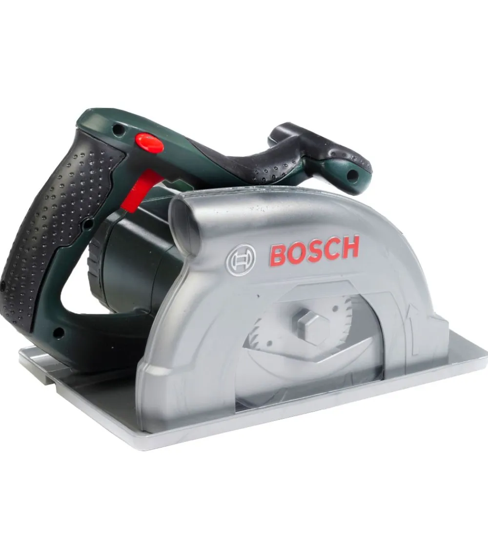 Bosch Mini legetøjs-rundsaven roterer, lyser og afgiver lydeffekter, så den til forveksling ligner mors eller fars til forveksling.