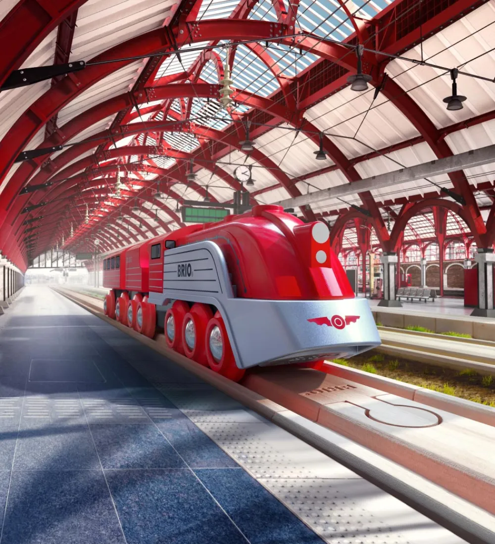 Smart BRIO strømlinet tog i rød med sølv detaljer.