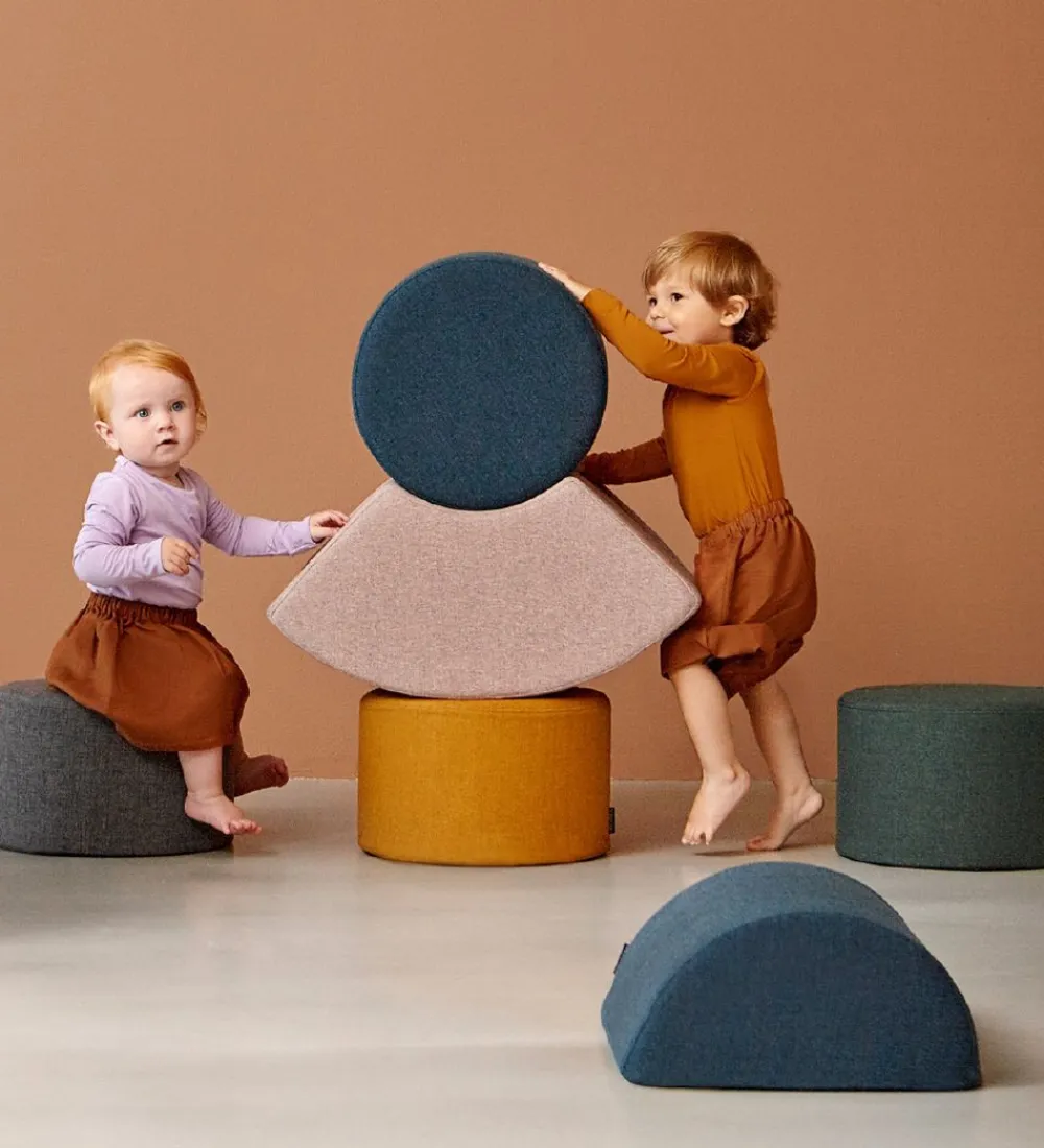 by Klipklap tumlemøblet har en buet form og en flad bund. Det lille barn kan ligge på maven hen over buen, så rygmusklerne trænes, det større barn kan sidde på den, og de voksne kan bruge den som fodstøtte. Tumlemøblet kan også indgå i børnenes leg på sjove og kreative måder. Ved at kombinere flere by KlipKlap tumlemøbler får man endnu flere muligheder for at skabe et legesygt univers på børneværelset, i stuen eller i legekrogen.