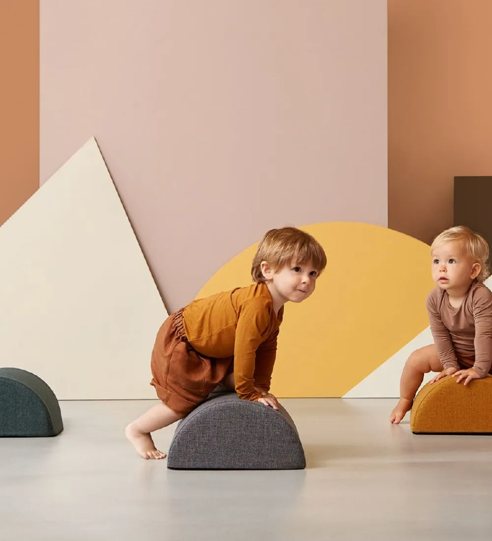 by Klipklap tumlemøblet har en buet form og en flad bund. Det lille barn kan ligge på maven hen over buen, så rygmusklerne trænes, det større barn kan sidde på den, og de voksne kan bruge den som fodstøtte. Tumlemøblet kan også indgå i børnenes leg på sjove og kreative måder. Ved at kombinere flere by KlipKlap tumlemøbler får man endnu flere muligheder for at skabe et legesygt univers på børneværelset, i stuen eller i legekrogen.