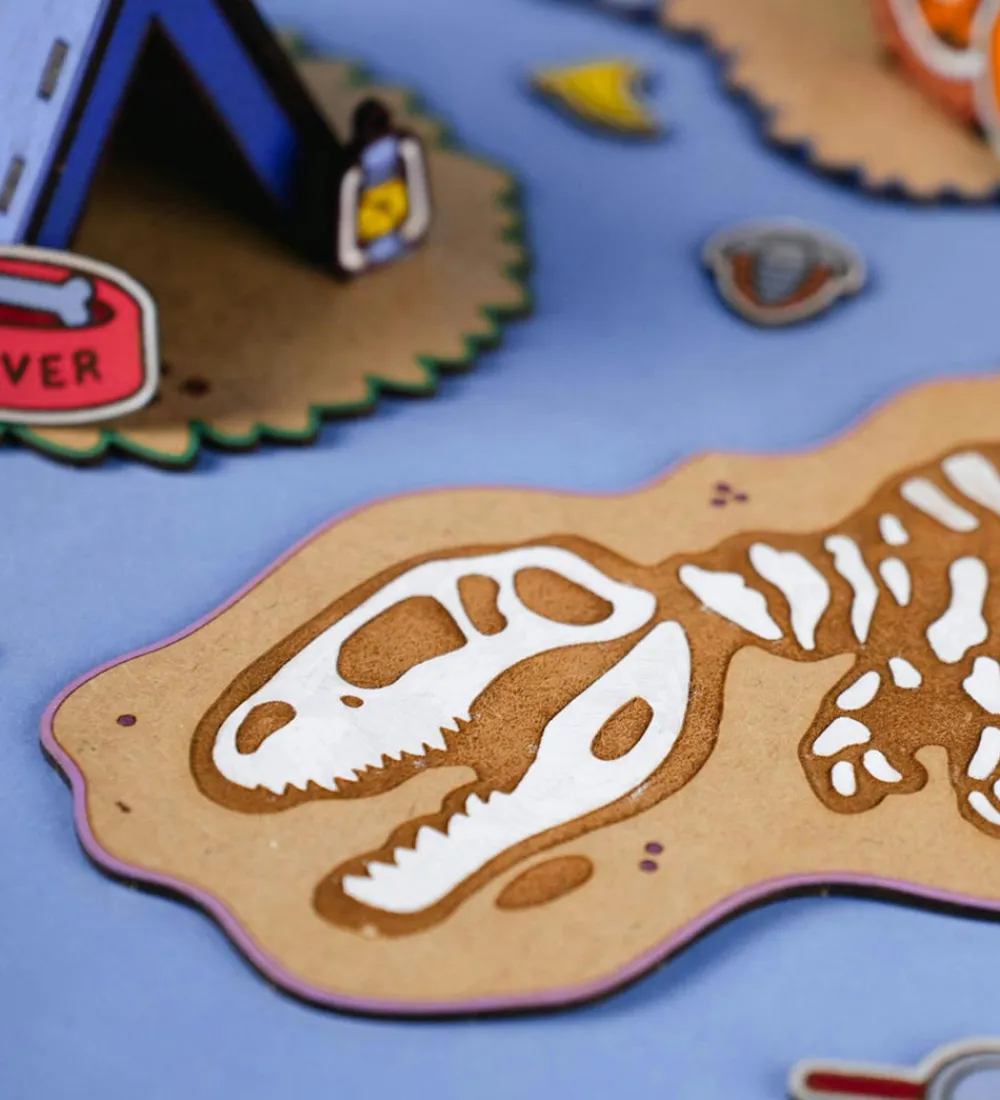 Sejt Crateit kreasæt med motiver til en jeep, et telt og en hund.