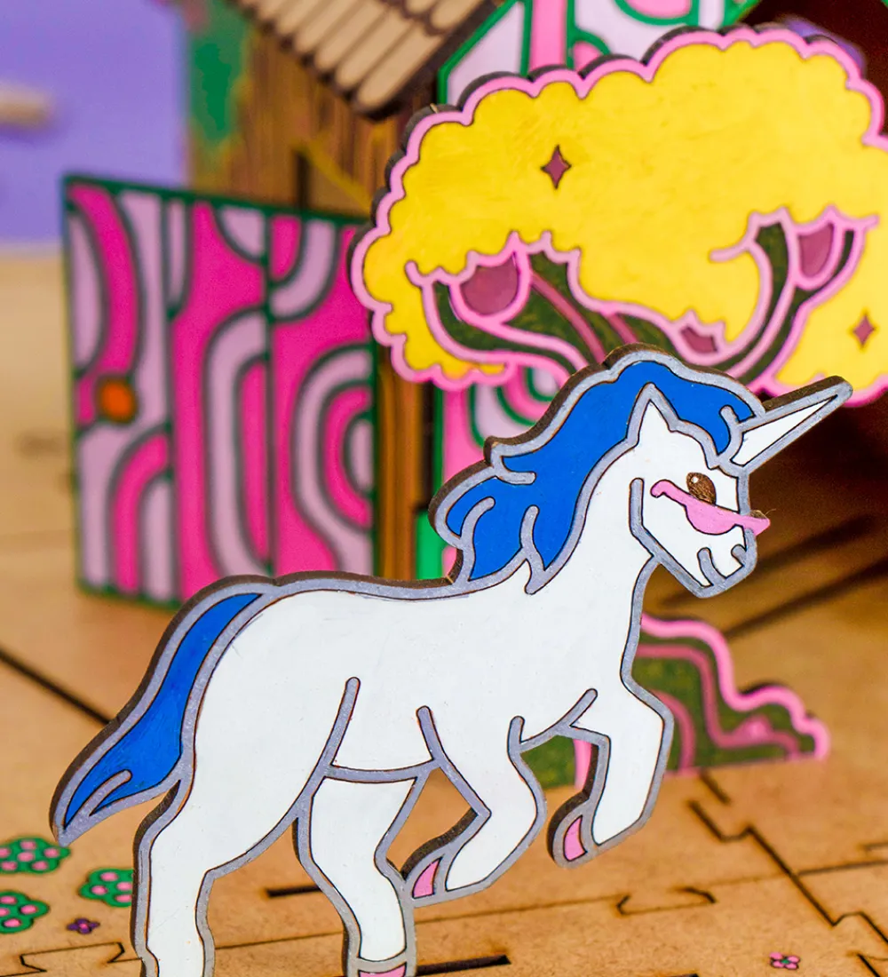 Crateit kreasættet består af i alt 18 figurer, heriblandt enhjørninger og tilbehør, der på smart vis kan sættes sammen. Crateit kreasættet er lavet af umalet træ, som kan farvelægges med alle slags tuscher, maling og farveblyanter.