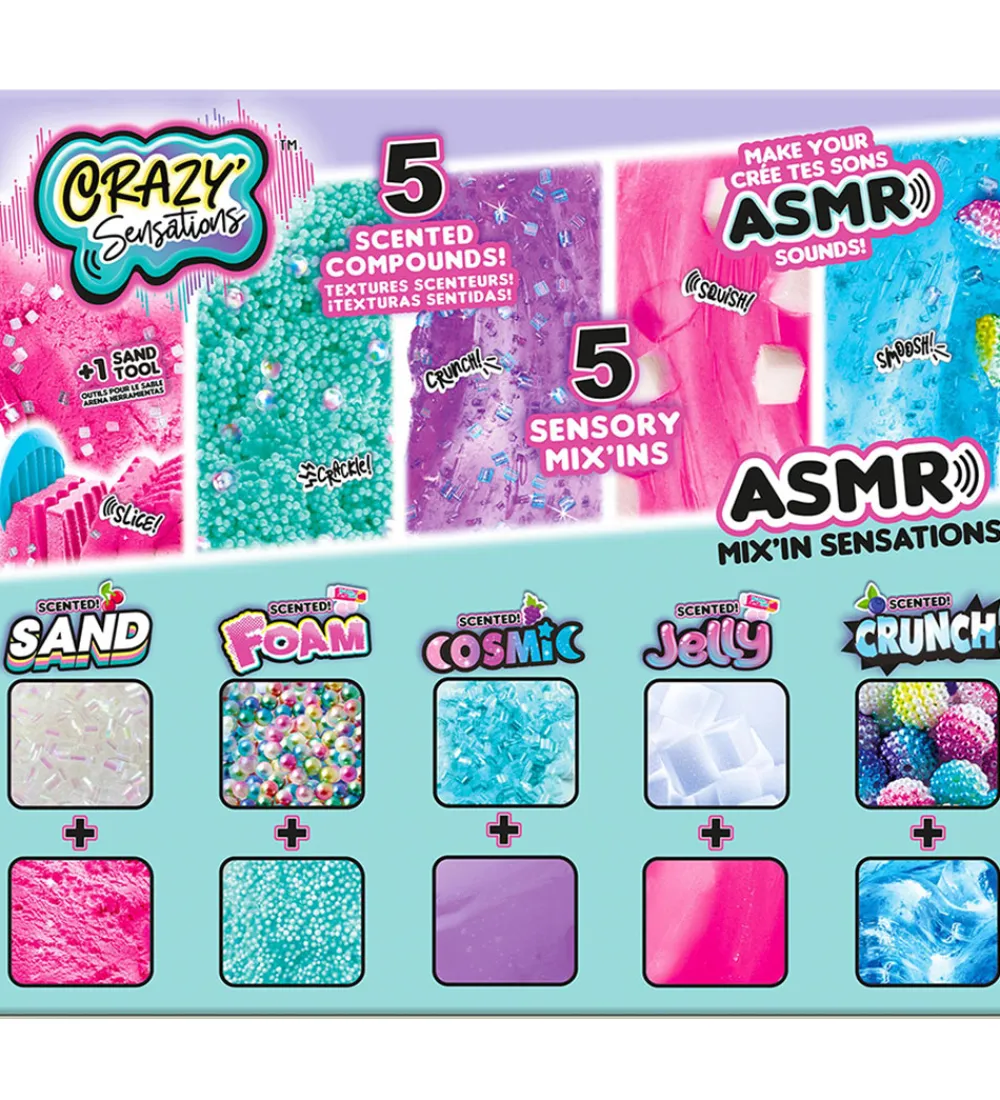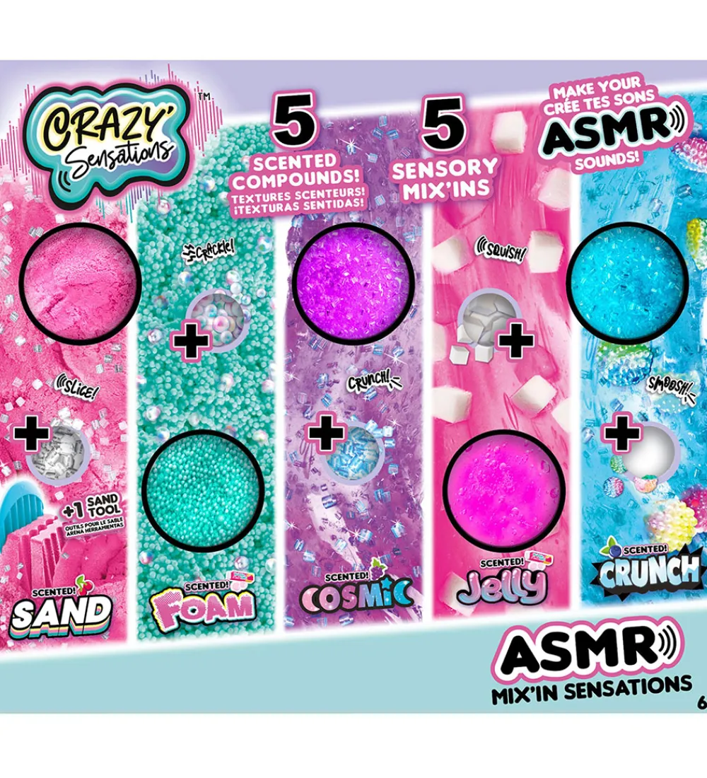 Crazy Sensations sættet er fantastisk at sidde med i hænderne og vil levere en masse sanseintryk i bedste ASMR-stil. De forskellige teksturer og dekorationer kan mikses sammen og tilvejebringe nye sanseindtryk, der er sjove og behagelige at opdage.