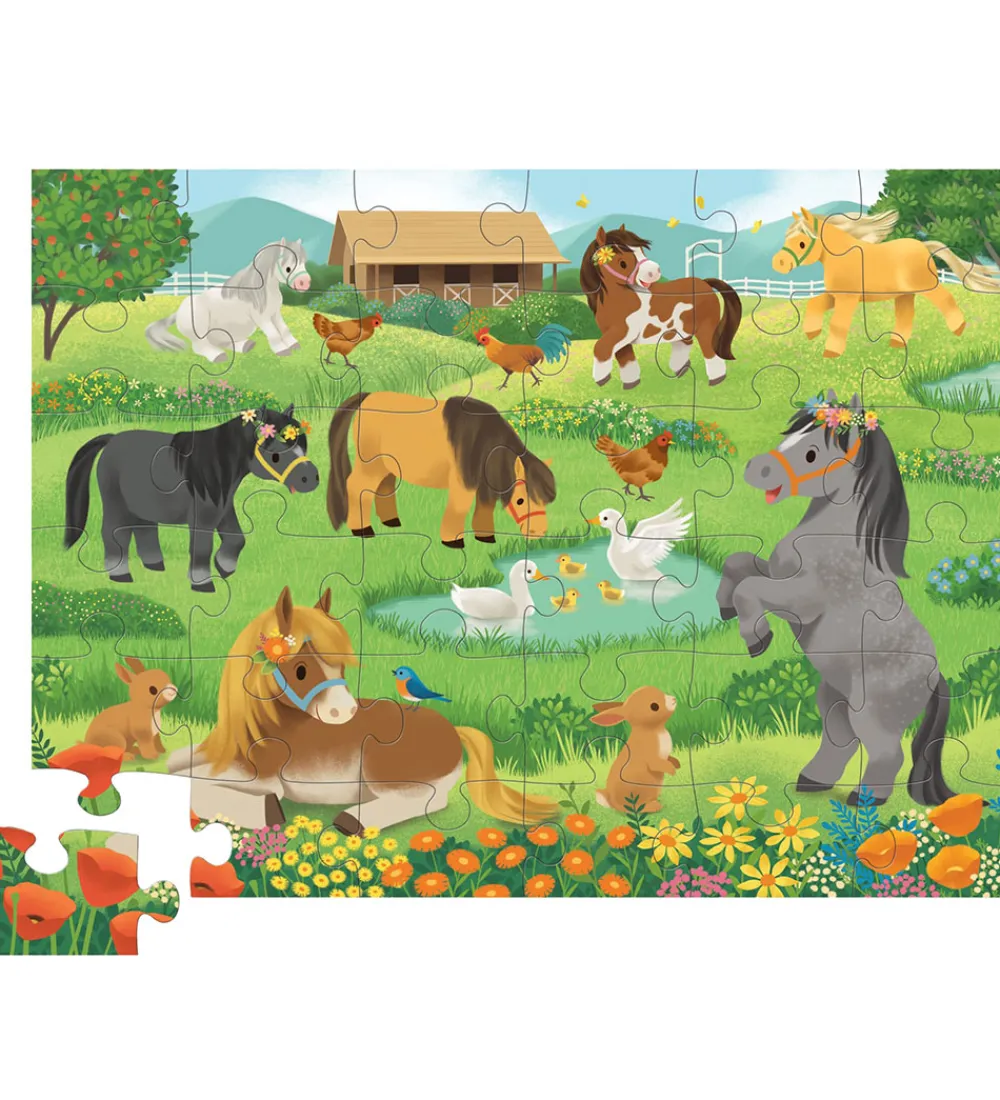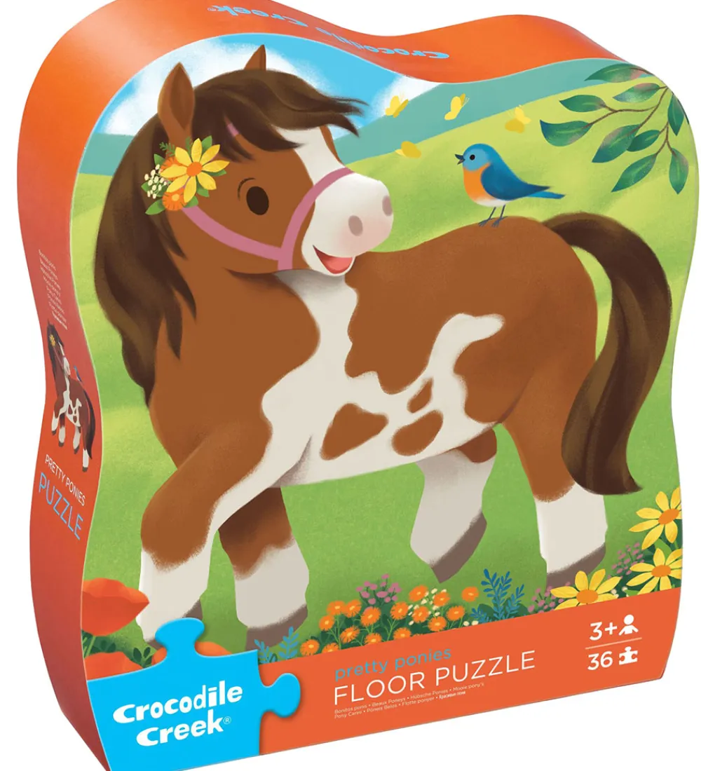 Flot Crocodile Creek gulvpuslespil med motiv af søde ponyer på en blomstereng.
