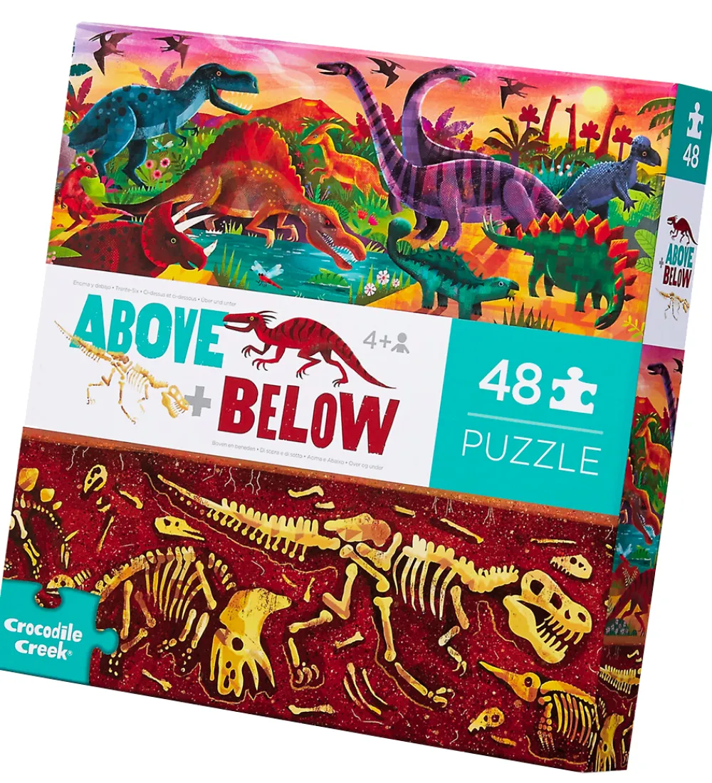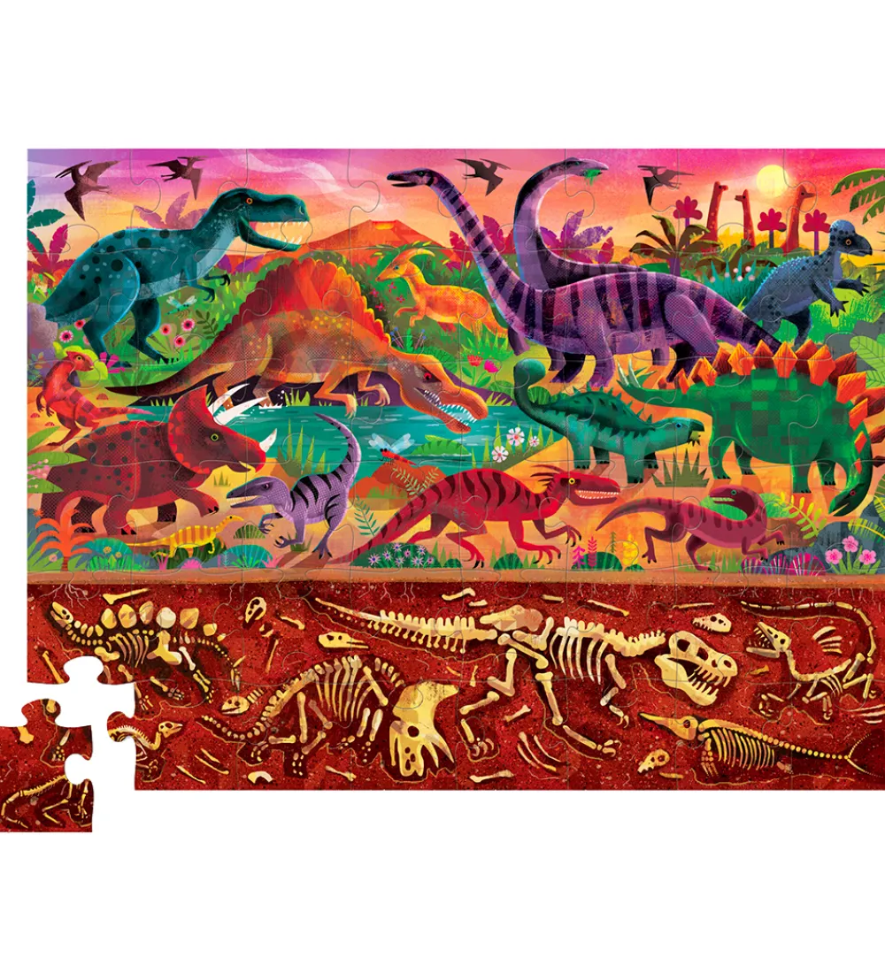 Farverigt Crocodile Creek puslespil med 48 brikker, der præsenterer en spændende dinosaurverden.