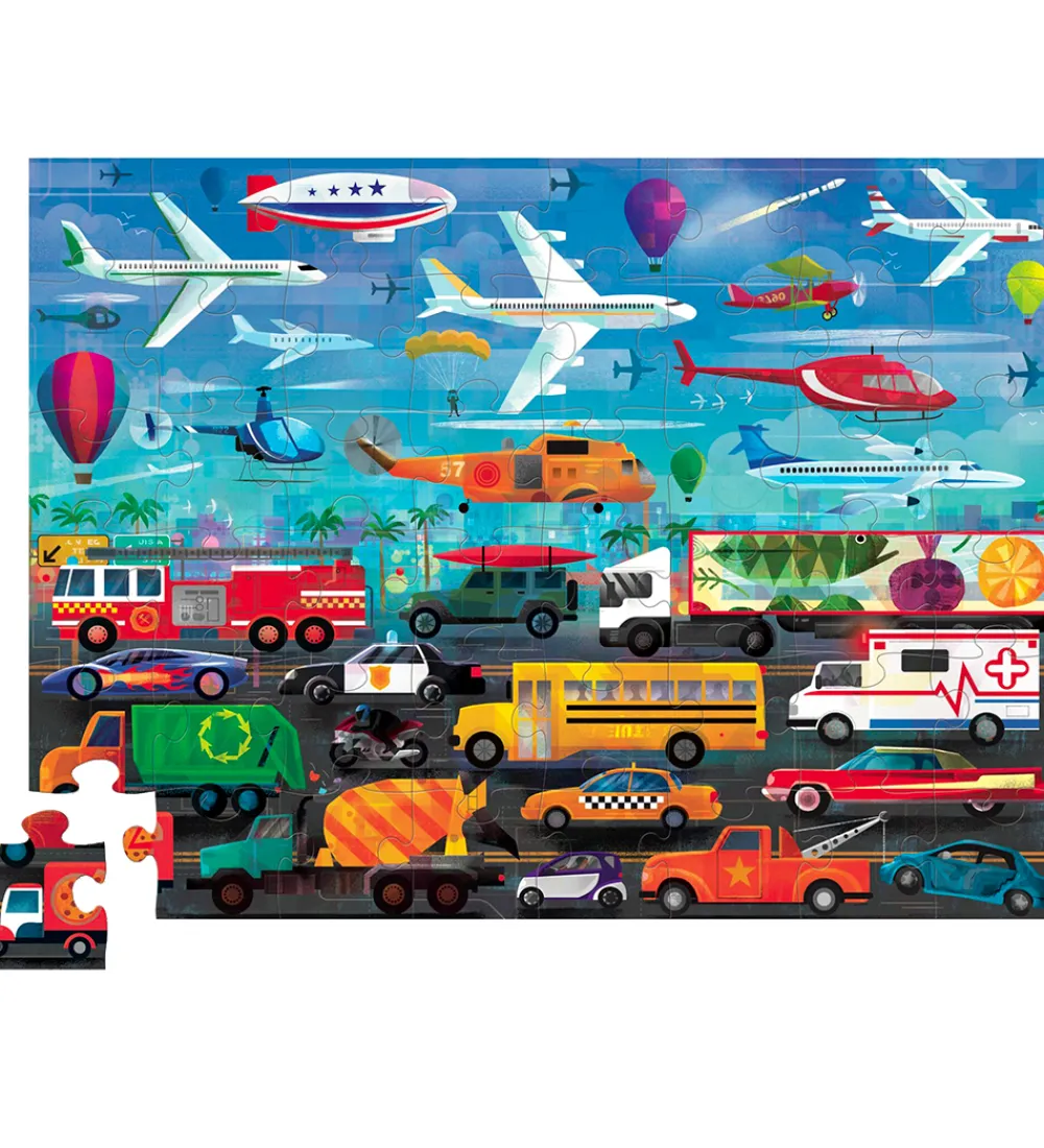 Spændende Crocodile Creek puslespil med 48 brikker i et farverigt design, der viser lufttransport og landkøretøjer. Puslespillet prydes af detaljerede illustrationer, der engagerer og underholder børnene.