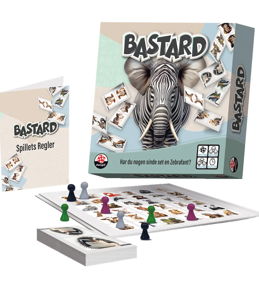 Bastard er et sjovt børnespil, hvor to dyr dyr er blevet mikset sammen, og det gælder om gætte hvilke to dyr, der er tale om, og vinde point.