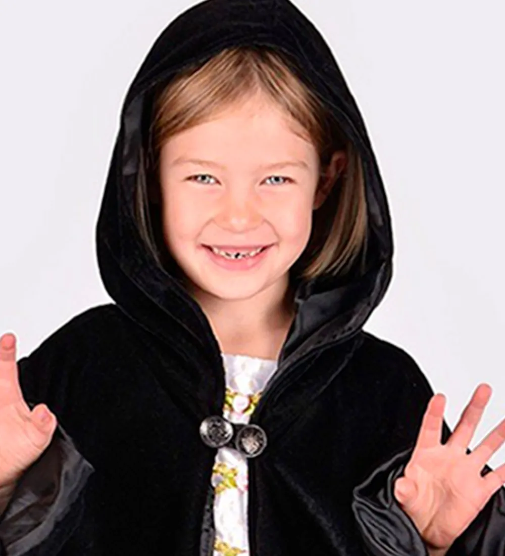 Den Goda Fen udklædningen er med hætte og lange ærmer, og den lukkes under hagen med to knapper. Udklædningen kan bruges til halloween og fastelavn, men kan også bruges der hjemme som en god tilføjelse til legen.