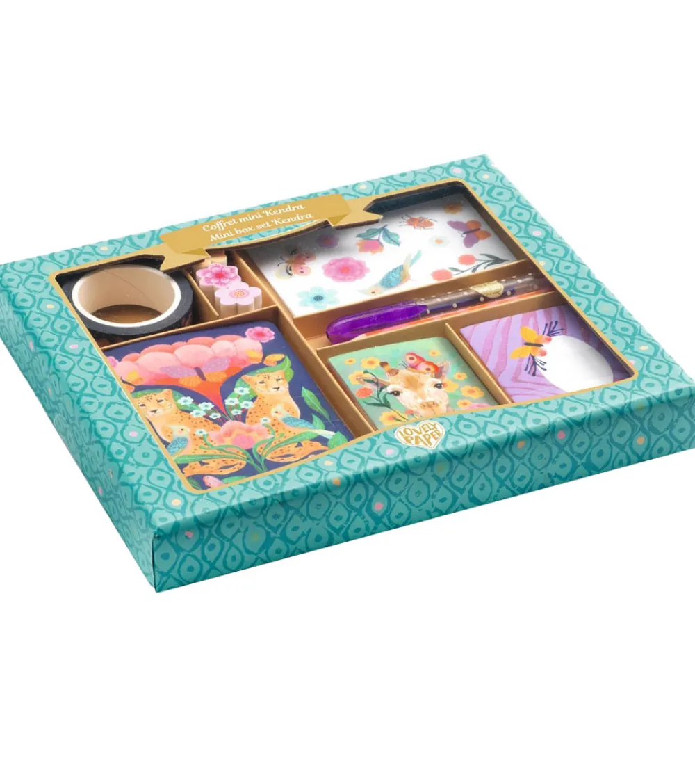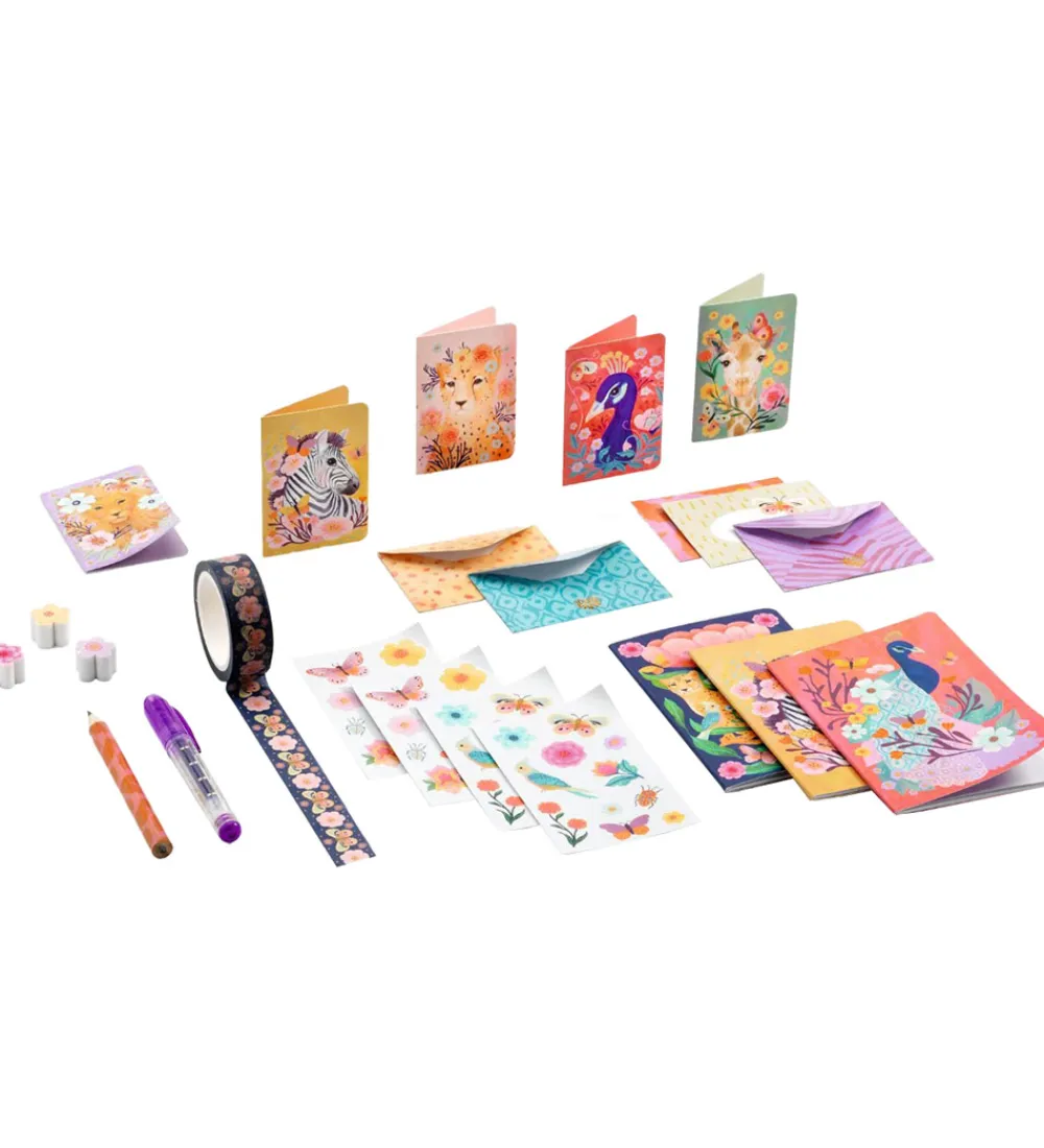 Djeco brevpapiret kommer i en flot æske, som indeholder: