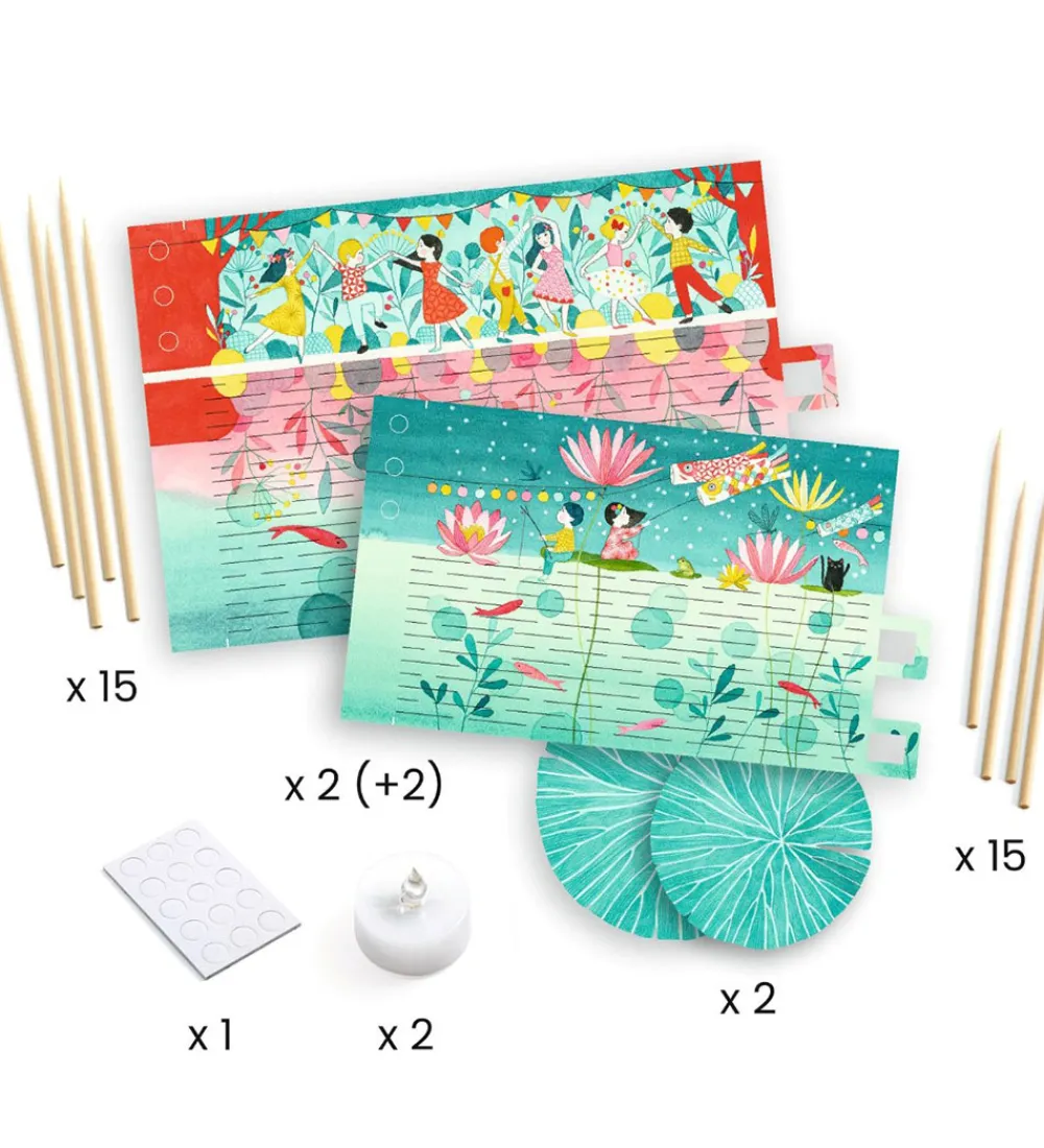 Djeco kreasættet sætter gang i den hyggelige stemnng med de flotte papir fyrfadsstager man selv kan lave ved at væve de medfølgende, naturlige bambusstænger.