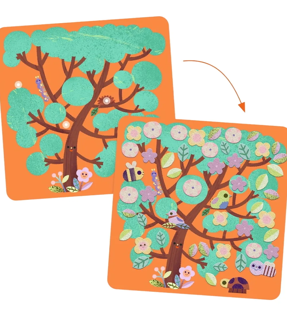 Dejligt Djeco kreasæt, hvor barnet kan lave flotte filtbilleder af et træ gennem årstiderne.