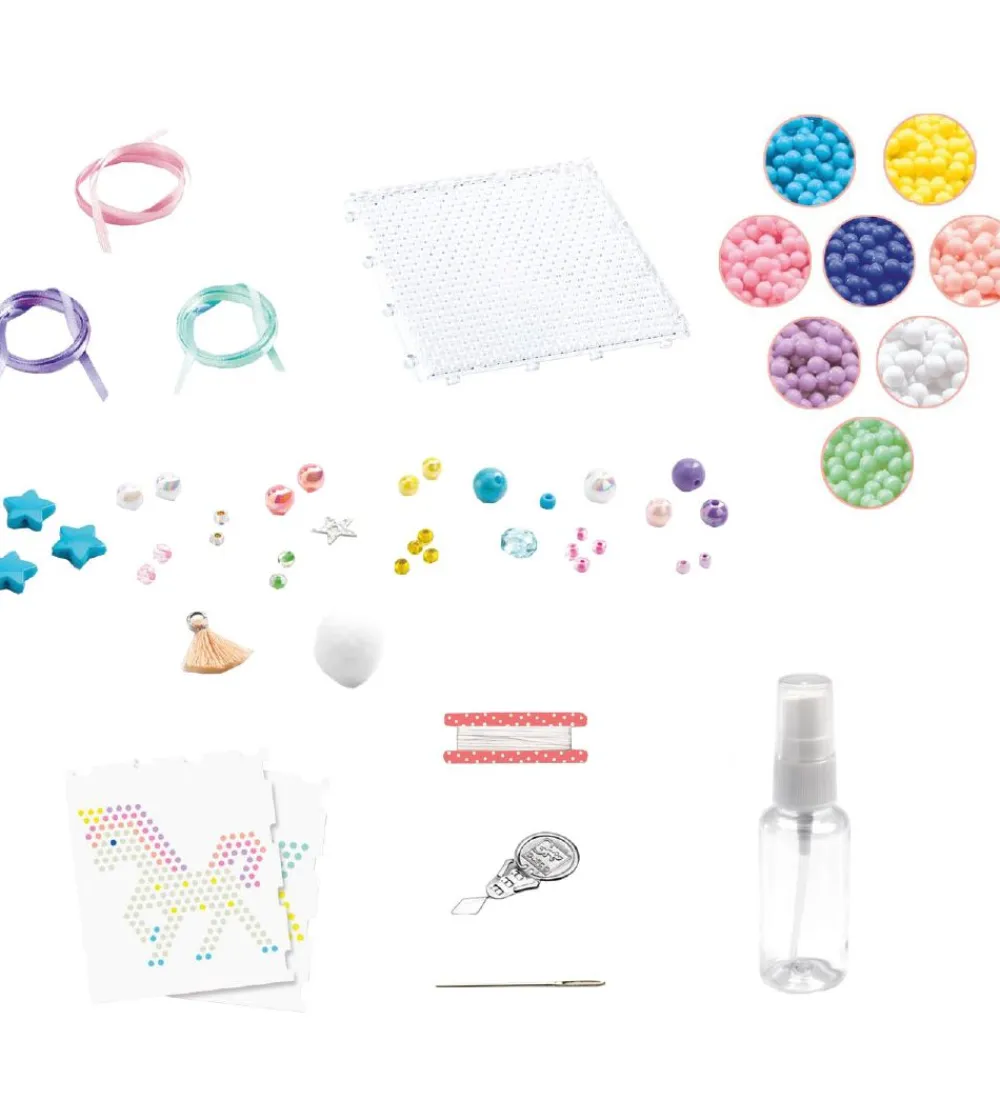 Djeco perlesættet kan bruges til at lave fine smykker med smukke vedhæng. Det er let at placere perlerne på pladen, på lige den måde man har lyst til. Derefter skal man blot sprøjte vand på, som får perlerne til at binde sammen.