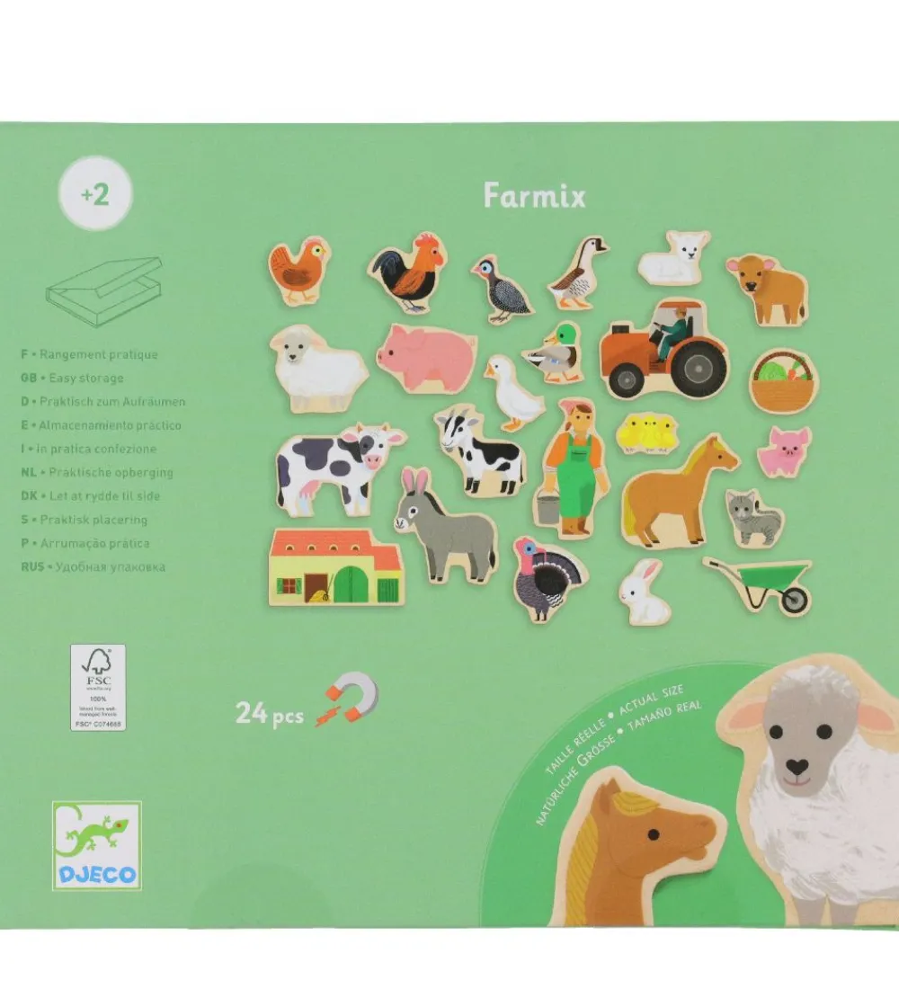Sødt Djeco magnetspil bestående af 24 magnet med et bondegårdstema.