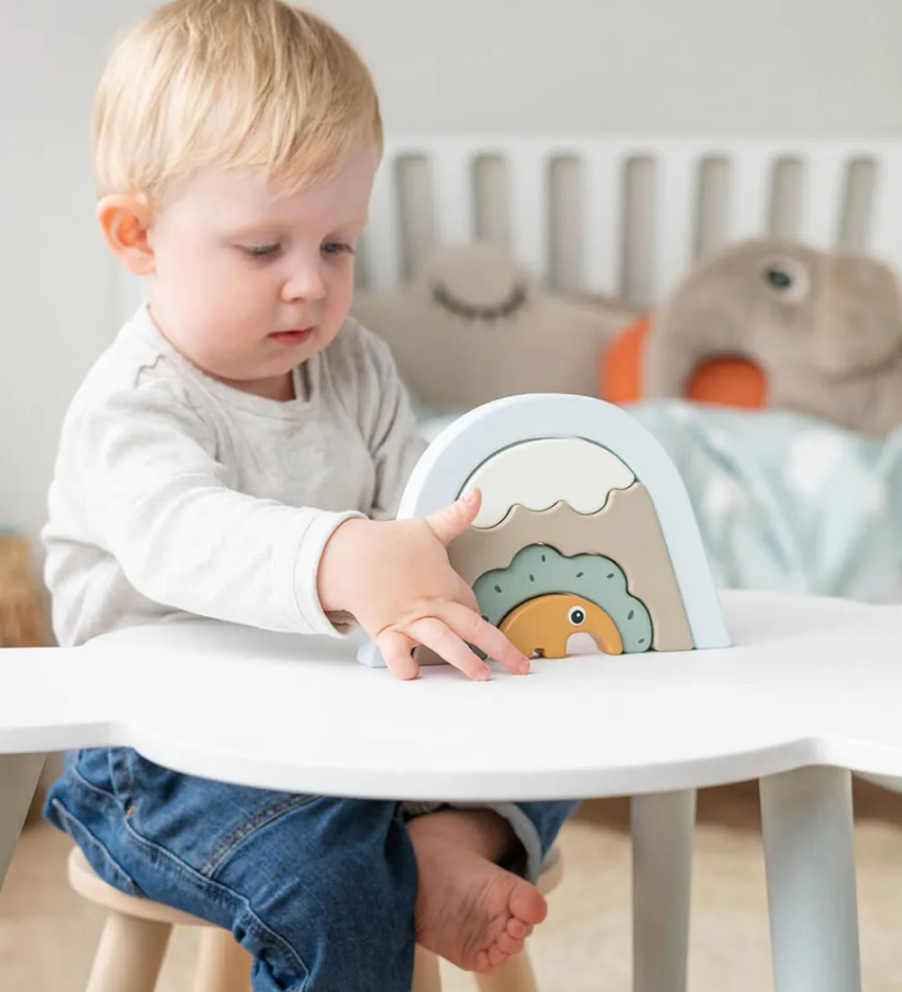 Done by Deer stablelegetøjet har fem multifuntionelle klodser der giver uendelige timer med fantasifuld leg og gådeløsning. Stablelegetøjet giver barnet mulighed for at stable, balancere og eltage i kreativ leg, derudover fungere legetøjet også som et dekorativt element til børneværelset.