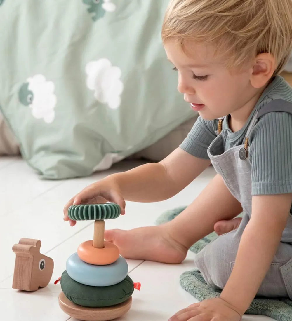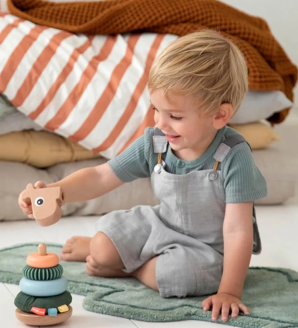 Done by Deer stabletårnet er lavet i træ og er perfekt til de små, som stadig er ved at øve motorikken og den logiske sans. Lagene passer alle sammen, så de små skal finde den rigtige rækkefølge. Når stabletårnet ikke bliver leget med, er det oveni en smart dekoration på børneværelset.