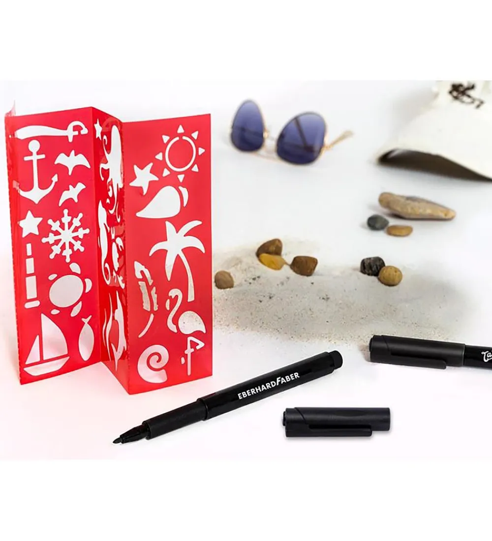 Faber-Castell tuscherne gør det muligt at tegne en masse seje tatoveringer. Der medfølger 4 skabeloner med over 20 motiver, så det er kun fantasien der sætter grænser.