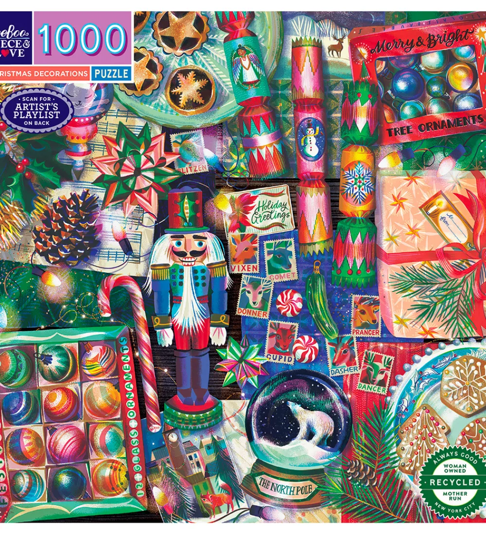 Fint Eeboo puslespil som forestiller forskellige juledekorationer.