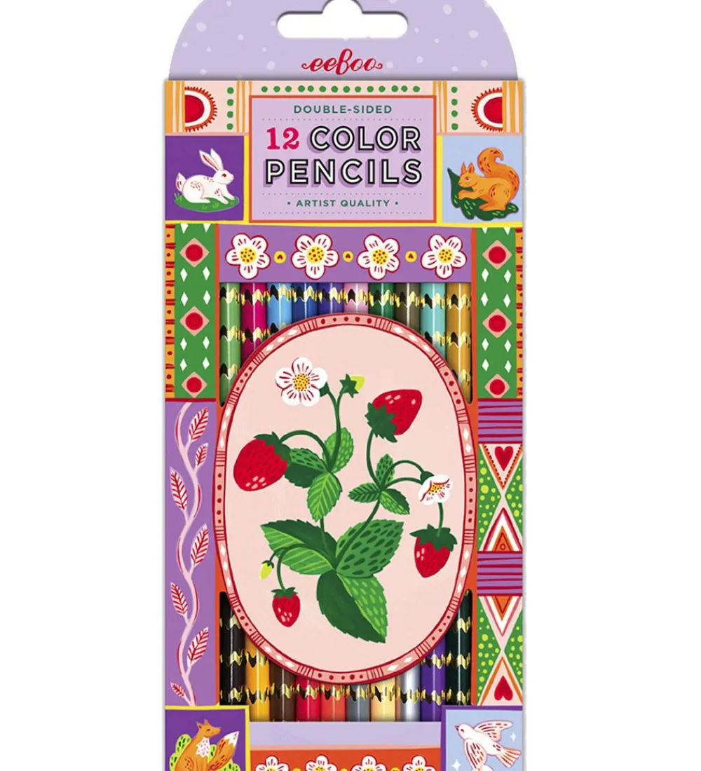 Eeboo farveblyanterne er dobbeltsidede, så der er faktisk i alt 24 farver. Farverne har en god størrelse, så det er nemt også for de mindre at farvelægge.