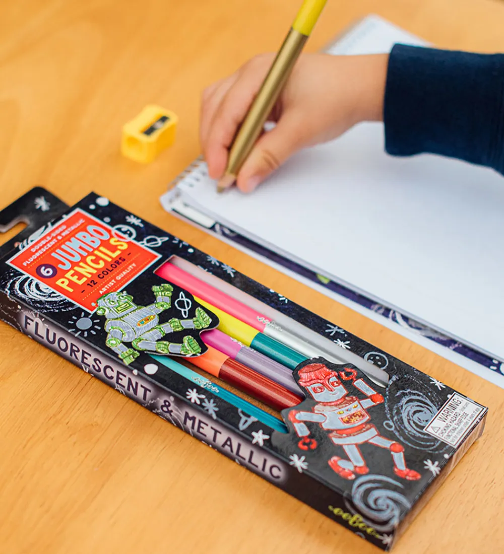 Fine Eeboo farveblyanter bestående af en kasse med 6 stk. i en god jumbo-version, der er nem at holde på.