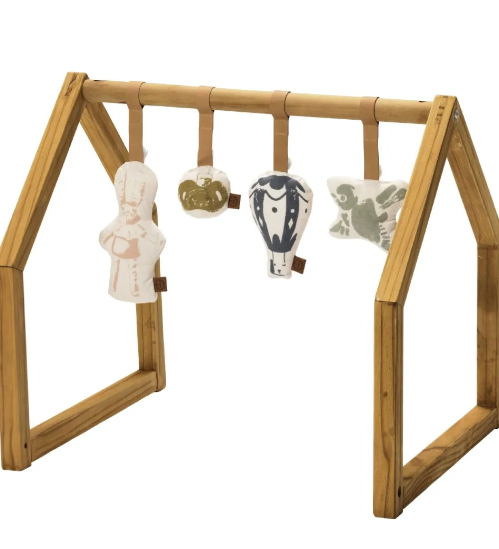 Elodie Details aktivitetsstativet er i solidt træ og har form som et lille hus. Aktivitetsstativet kan bruges med andre Elodie Details varer, men kan selvfølgelig også bruges for sig selv. Man kan f.eks. ligge et tæppe over toppen, for at lave en lille hule til de små.