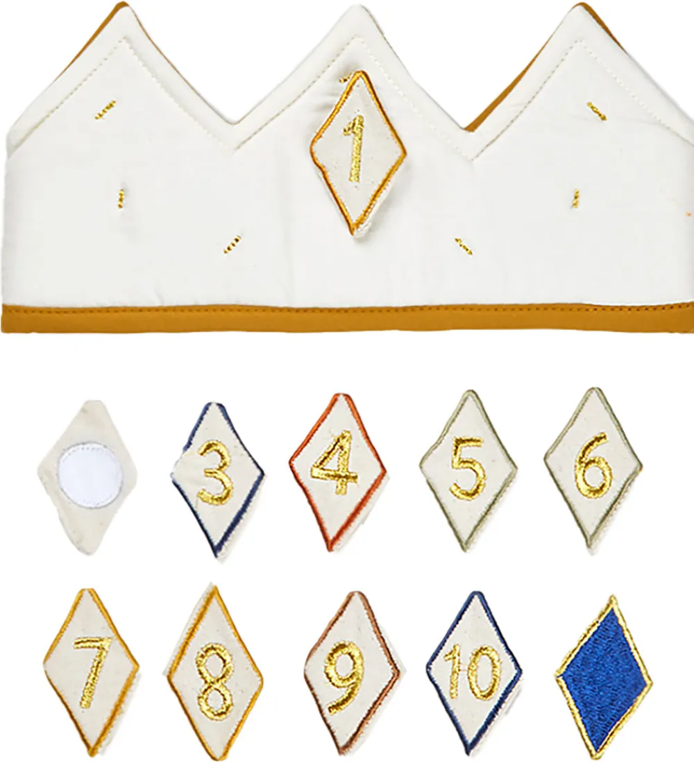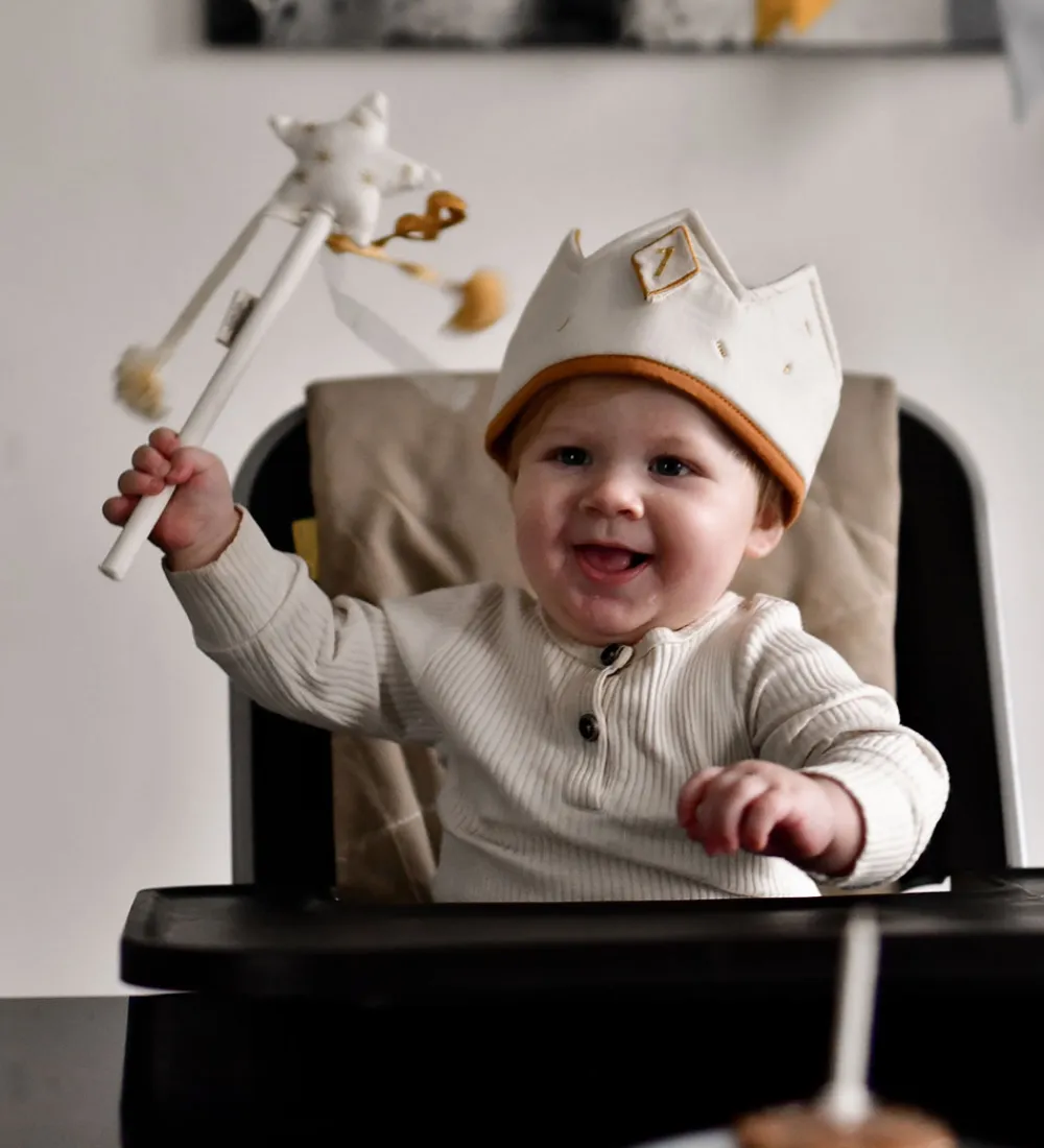 Sød Fabelab fødselsdagskrone i beige med en inderside i karrygul.