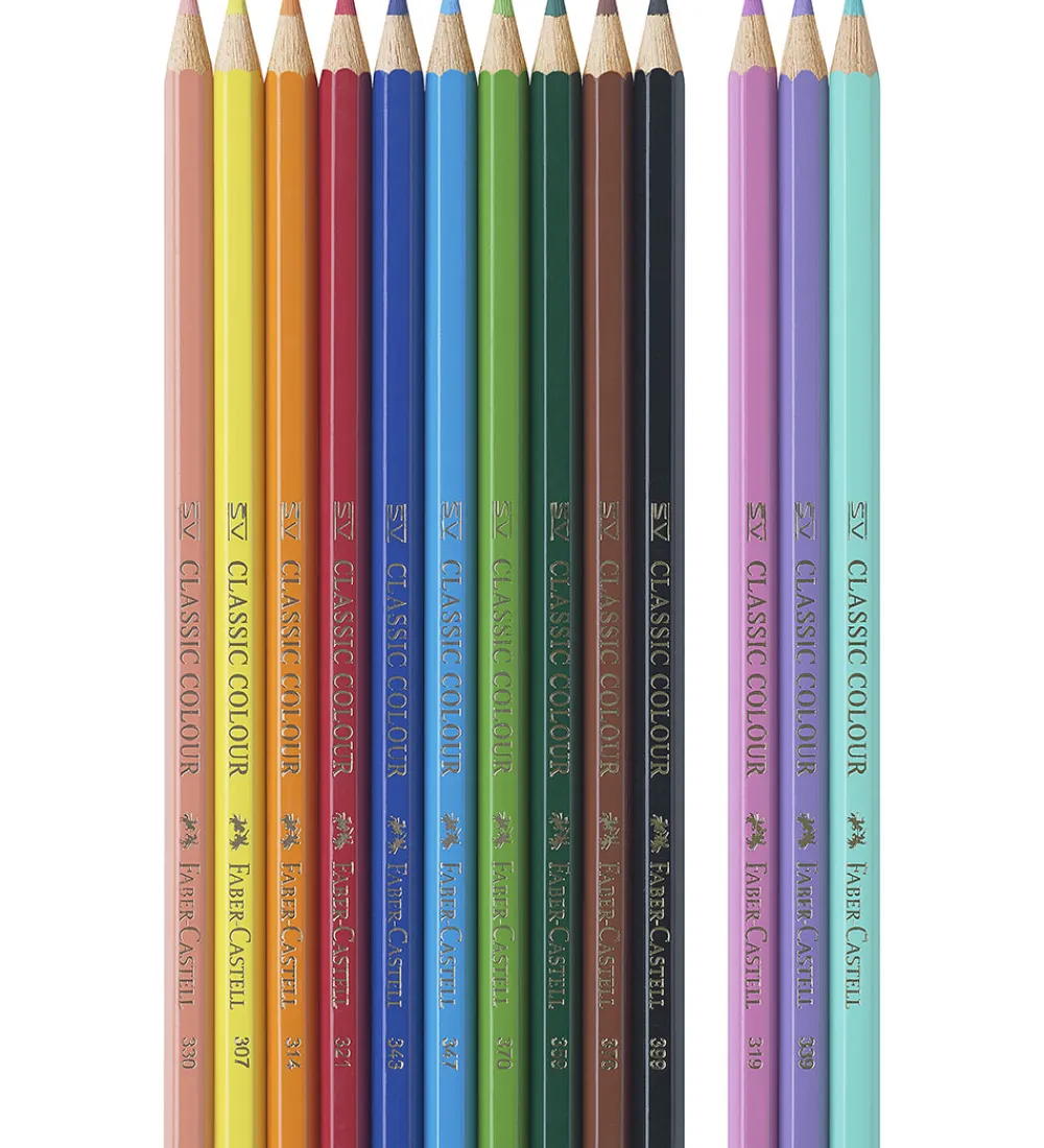 Fine Faber-Castell farveblyanter i et sæt med 13 farveblyanter bestående af:
