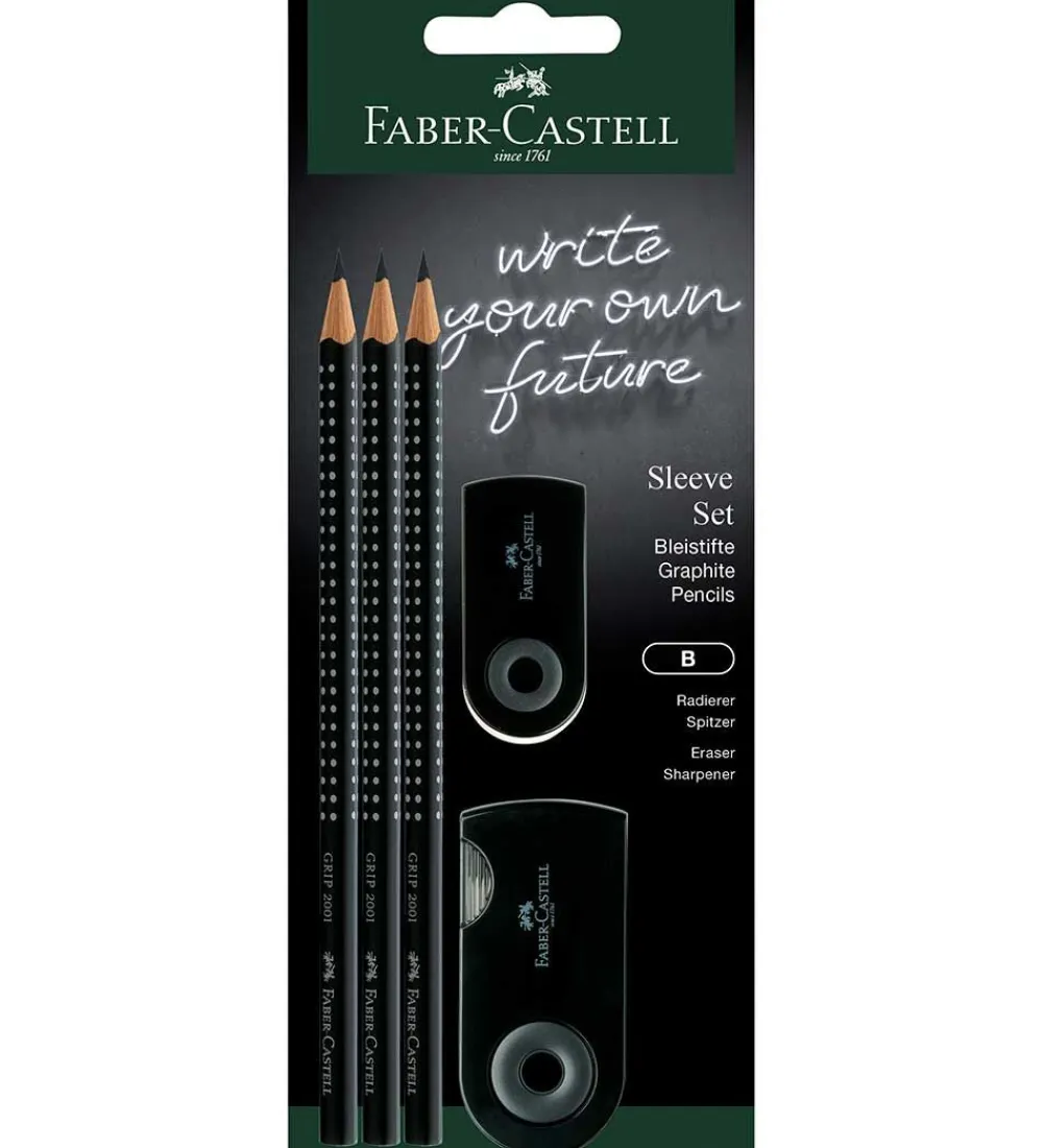 Faber-Castell sættet indeholder alt det nødvendige, til at få en god start i skole. Blyanterne har en god, ergonomisk form og tilbehøret er i en god kvalitet.