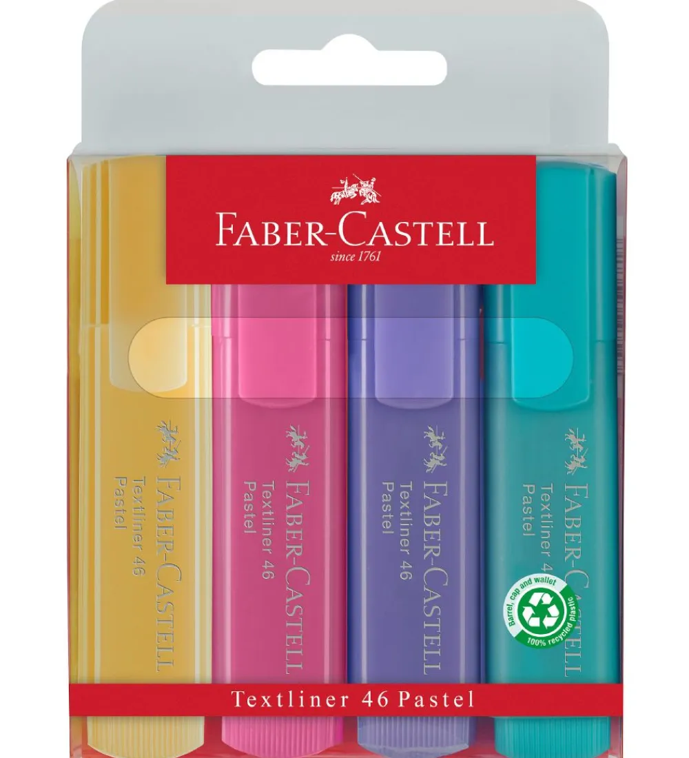 Faber-Castell overstregningstuscherne bruges til at markere i tekst og farvelægge større områder. Tuscherne har en smart spids, som kan tegne i tre bredder, 1, 2 og 5 mm.