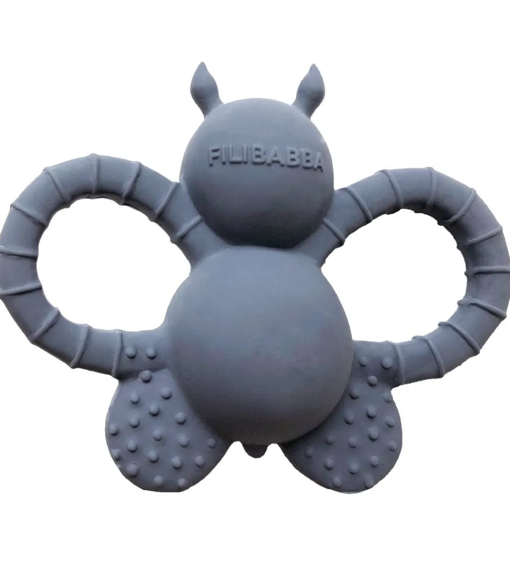 Filibabba bideringen er lige til at sætte tænderne i om det er ørene og hornene eller ringen baby bider i, så hjælper bideringen baby med at få stimuleret gummerne. De forskellige teksturer er gode og spændende for de små.