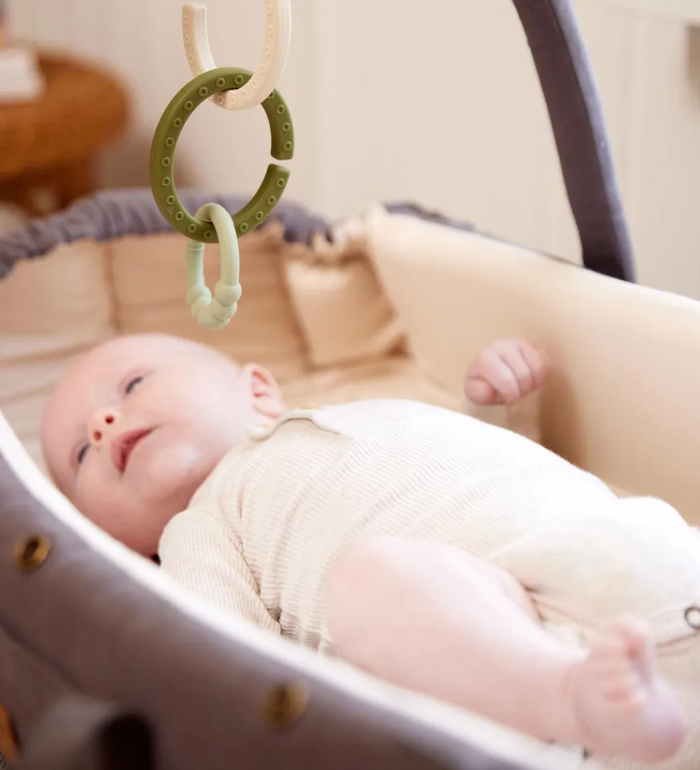 Skønne Filibabba bideringe solgt i en 2-pak med farverne støvet grøn og varm gråbeige