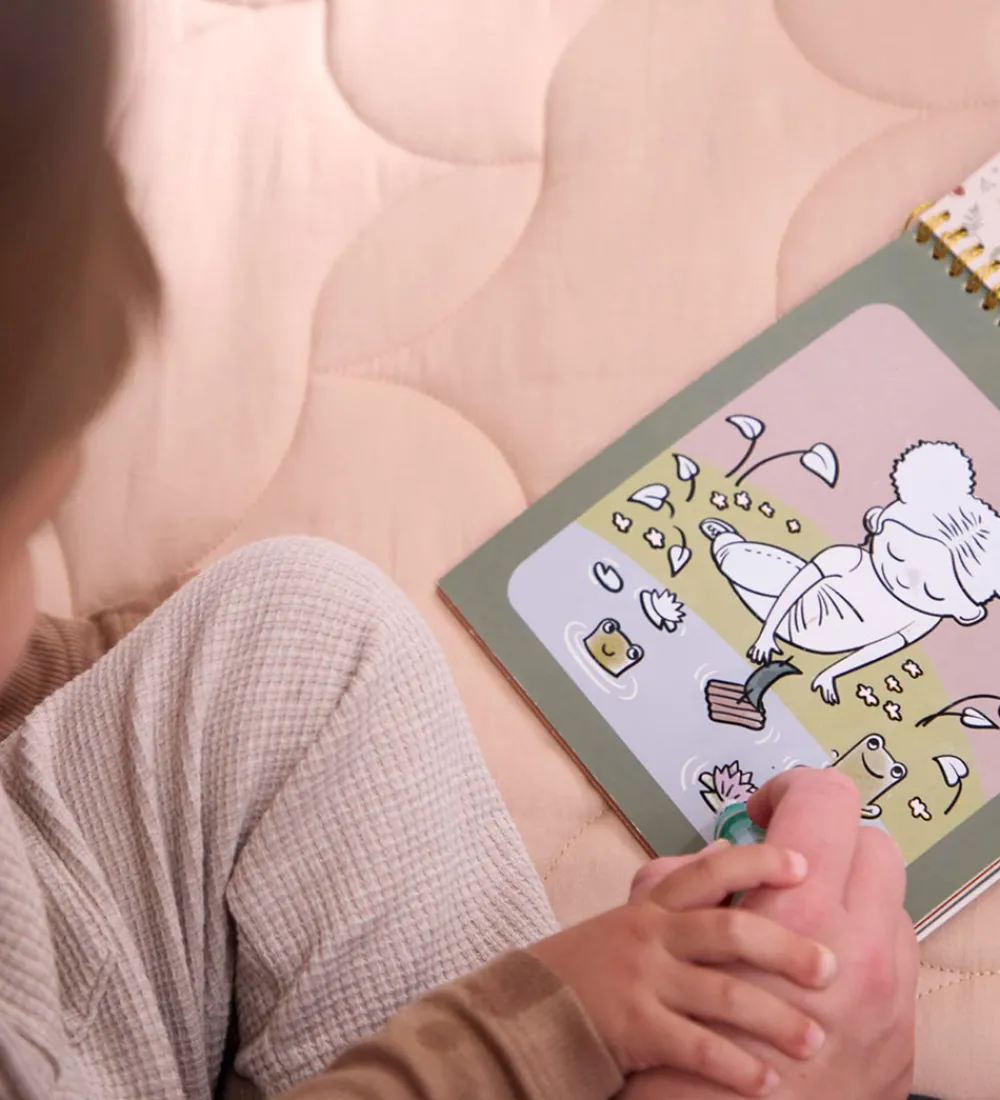 Filibabba vandmalebogen har spiralryg og kraftige sider med motiver, der skal males med den medfølgende, smarte tusch, som fyldes med vand. Når vandet fra pennen rammer illustrationerne, toner farverne frem.