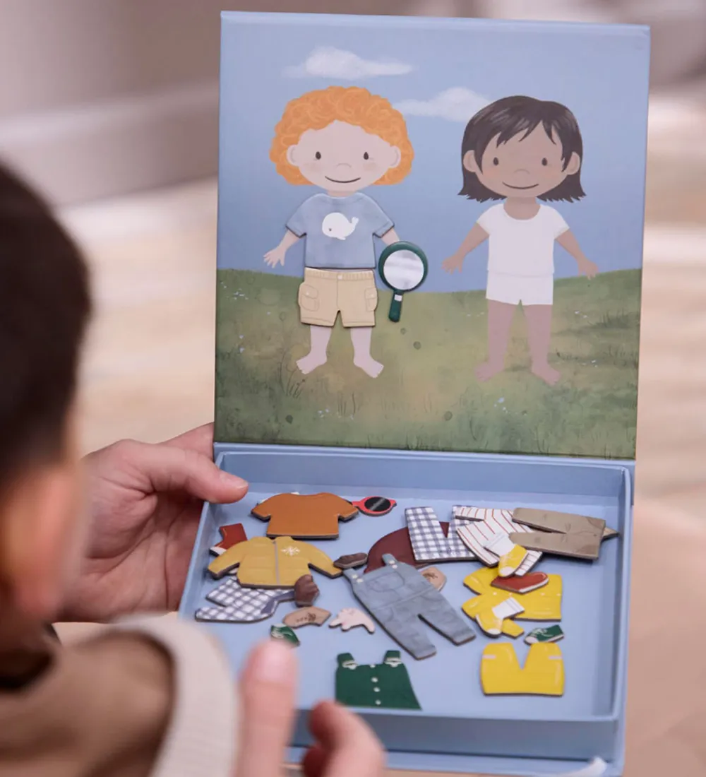 Sjovt Filibabba magnetisk spil med påklædningsdukker, der skal gøres klar til eventyr.