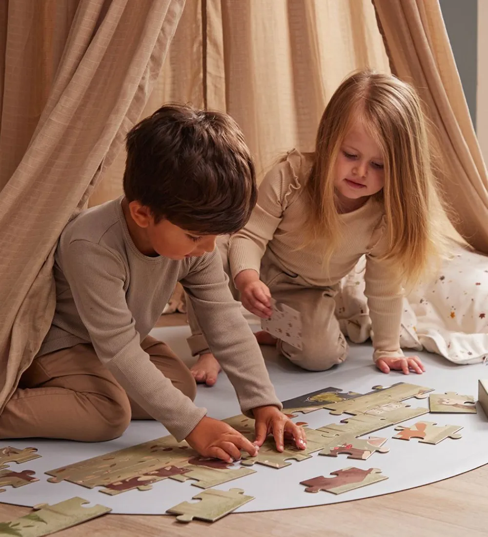 Filibabba puslespillet består af 30 brikker og har en aflang form. Puslespillet er med til at styrke barnets finmotorik og kreativitet.