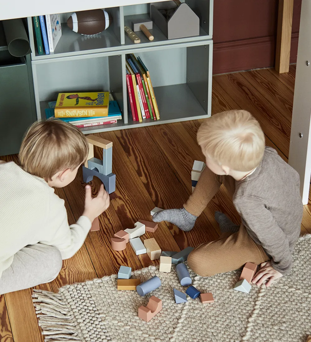 Fine Flexa træklodser fra Play-kollektionen i malet, massivt birketræ og birkekrydsfinér.