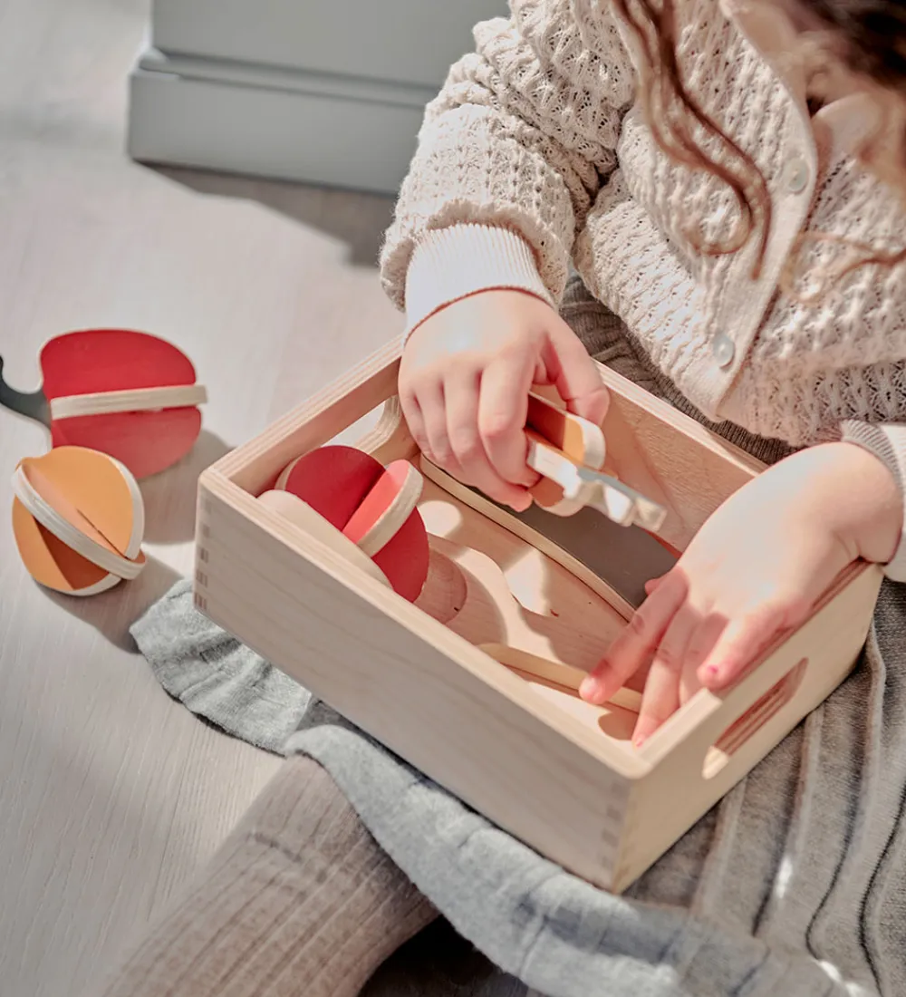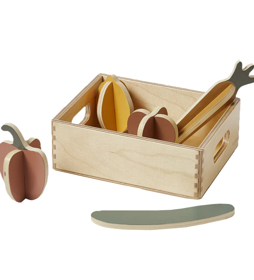 Flexa sæt der inkluderer forskellige grøntsager, perfekt til rolleleg og stimulerer barnets fantasi. Legemaden leveres i en praktisk kasse, der gør det nemt at opbevare og organisere. Flexa’s design bidrager til en hyggelig legestund, hvor børn kan lære om madvarer og deres former, samtidig med at det er flot på børnseværelset.