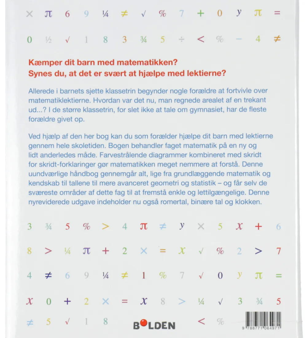 Lærerig Forlaget Bolden bog med titlen “Hjælp dit barn med matematik – gennem grundskolen og gymnasiet”.