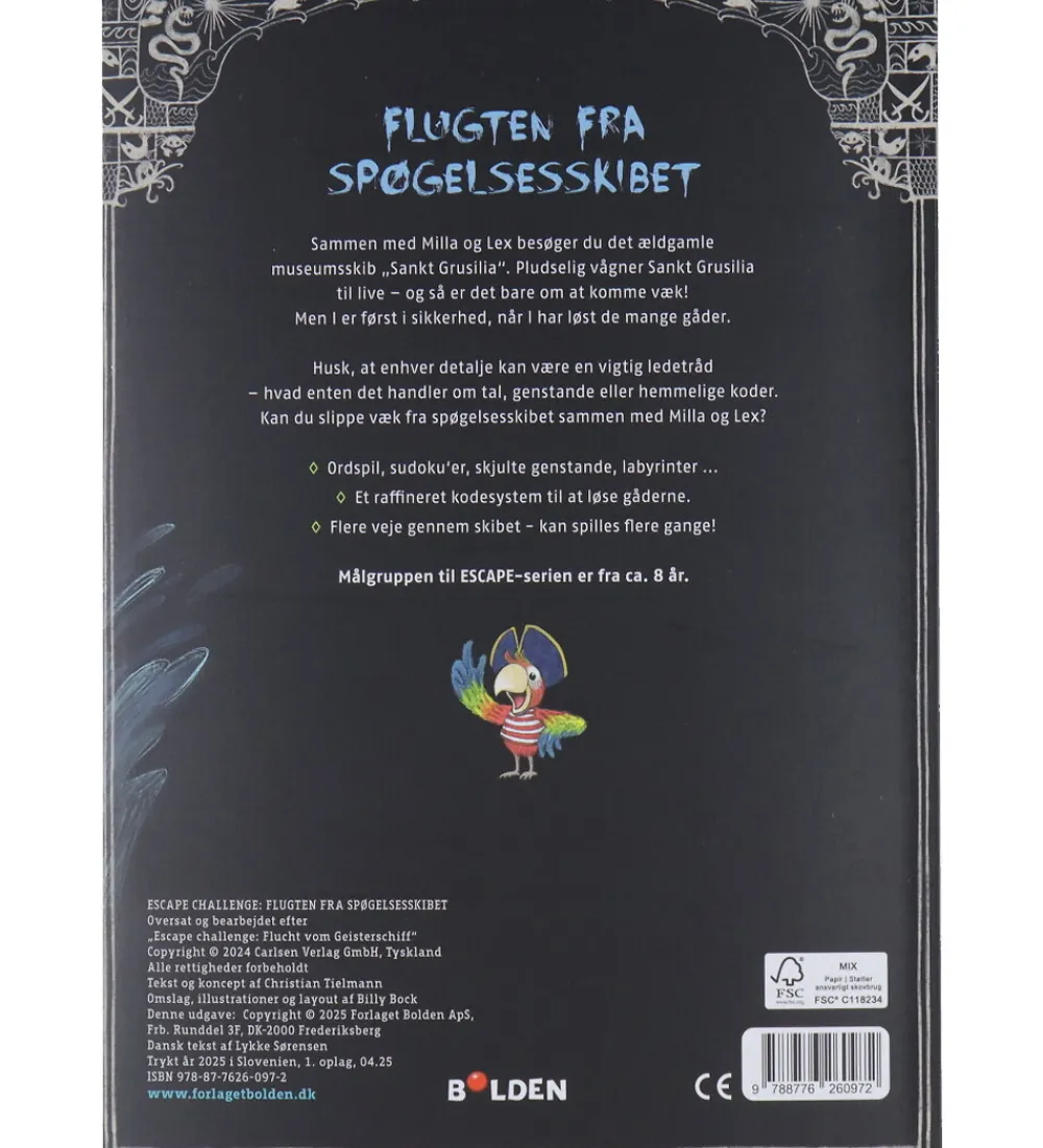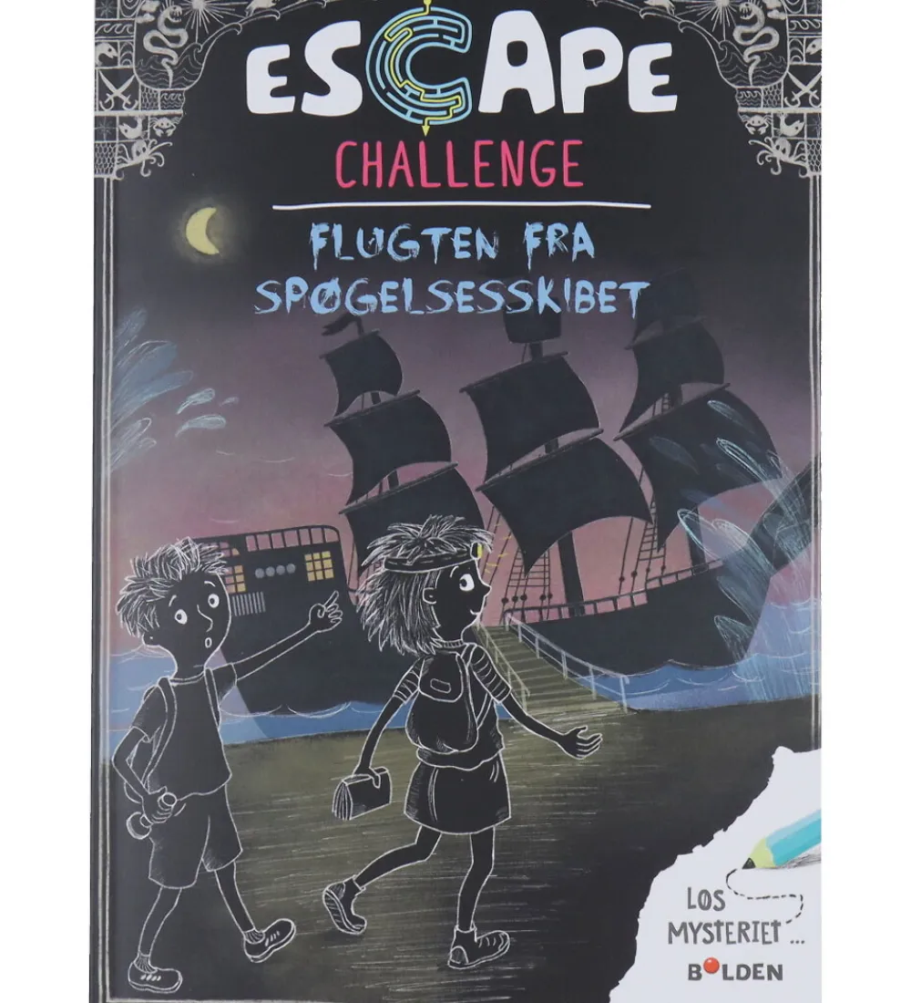 Spændende Forlaget Bolden opgavebog med titlen “Flugten fra Spøgelsesskabet” fra serien “Escape Challenge”.