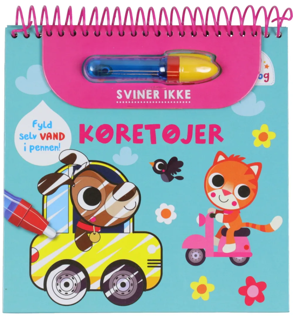 Forlaget bolden malebogen har spiralryg og kraftige sider med motiver, der skal males med den medfølgende, magiske pen, som fyldes med vand. Når vandet fra pennen rammer illustrationerne, toner farverne frem.
