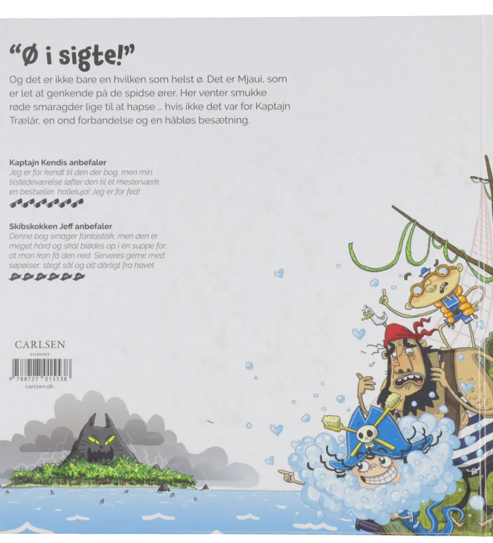 Bogen indeholder flotte illustrationer af en fantasifuld fortælling, om Kaptajn Skumskæg som skal besøge en ø for at hapse røde smaragder, men Kaptajn Trælår, en ond forbandelse og en håbløs besætning giver udfordringer.