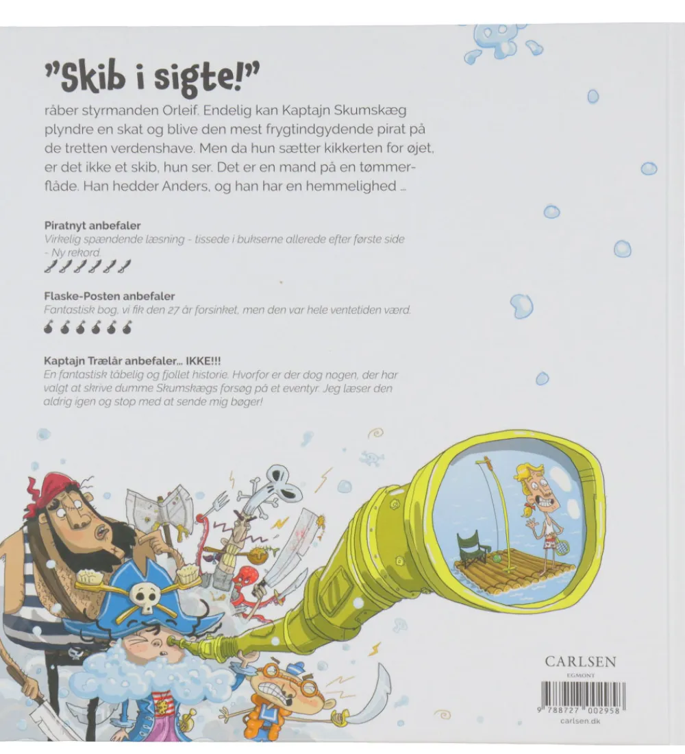 Sjov Forlaget Carlsen bog med titlen “Kaptajn Skumskæg og tømmerflådens hemmelighed”.