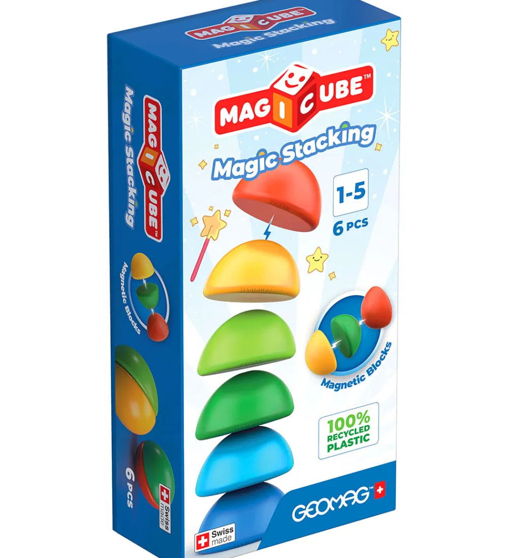 Sjovt Geomag magnetlegetøj i form af disse flotte, magnetiske klodser i forskellige farver. Magnetlegetøjet består af 6 dele: