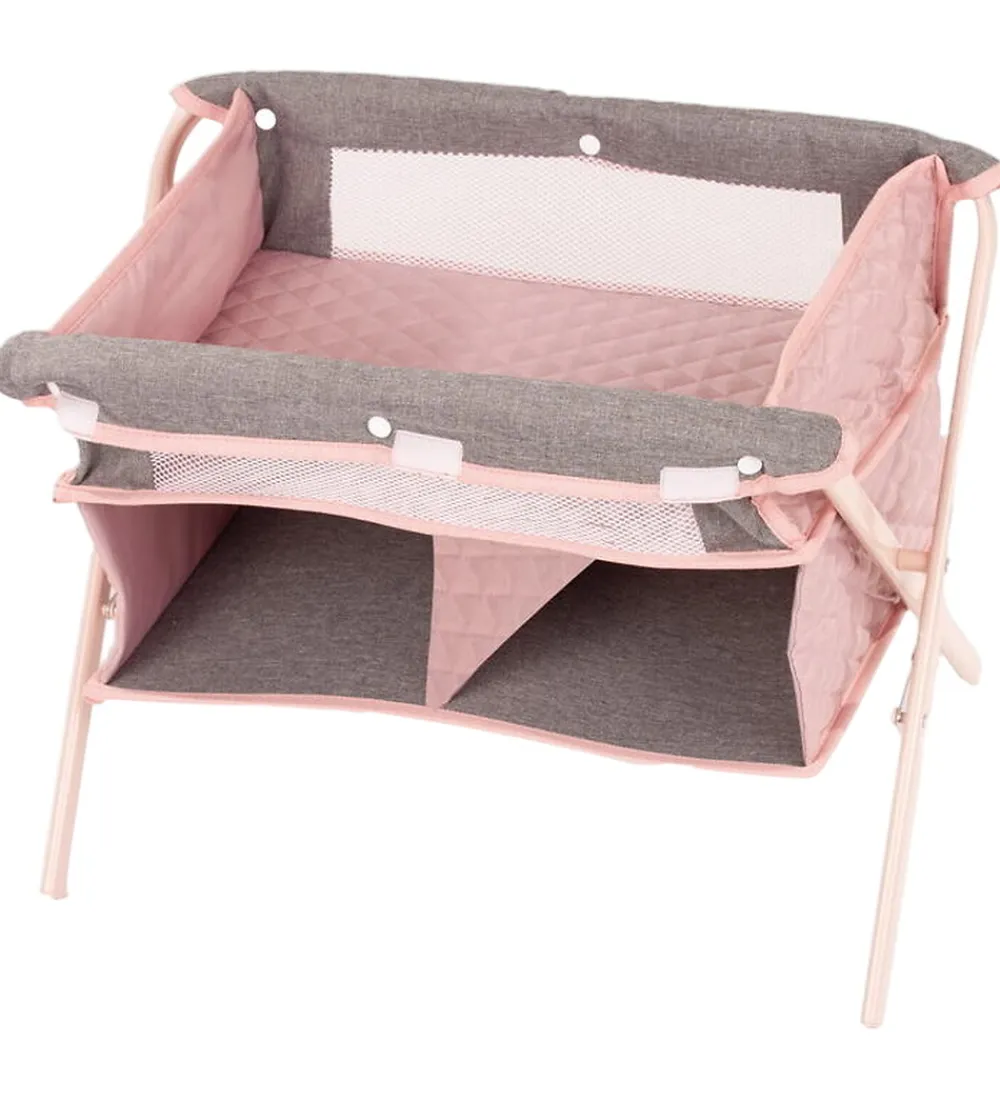 Sødt Götz puslebord til dukke i rosa med grå detaljer.