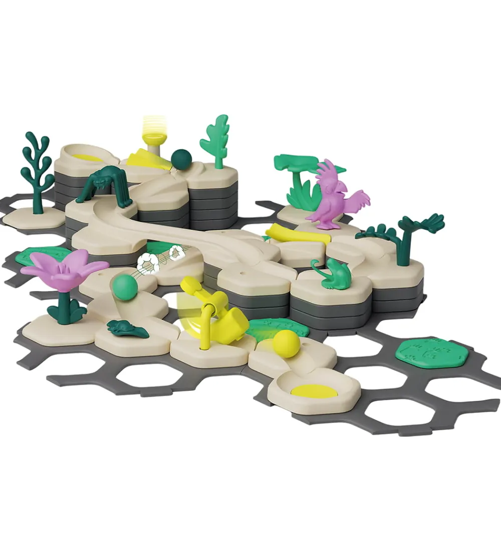 Gravitrax Junior kuglebanen kan bygges lige som man har lyst til, og man kan bygge sjove kuglebaner med forskellige elementer, som får kuglen til til at trille, stoppe eller ændre kurs. Dette begyndersæt har specialdesignede elementer til yngre børn.
