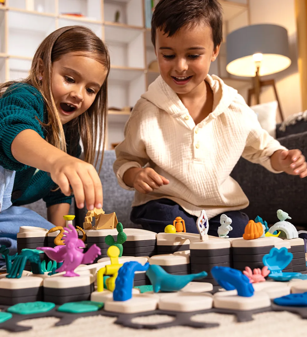 Gravitrax Junior kuglebanen kan bygges lige som man har lyst til, og man kan bygge sjove kuglebaner med forskellige elementer, som får kuglen til til at trille, stoppe eller ændre kurs. Dette begyndersæt har specialdesignede elementer til yngre børn.