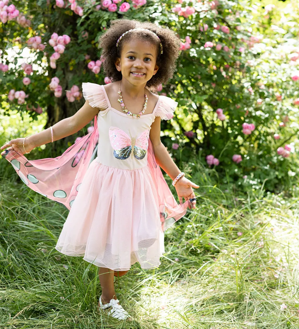 Fin Great Pretenders udklædning i en lys rosa farve med glitrende sommerfugleprint på fronten, og flotte tyl detaljer.