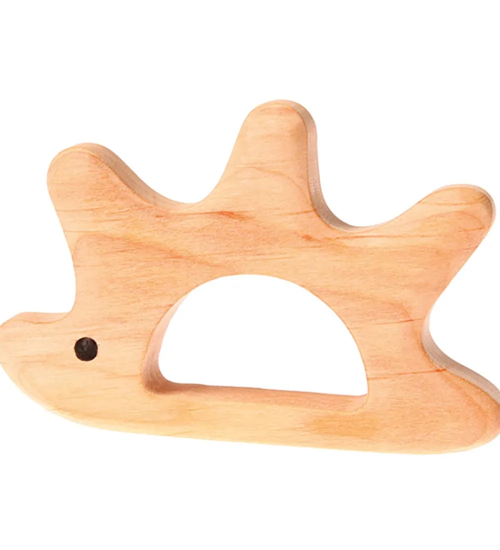 Sjov Grimms rangle med form som et pindsvin i naturlig træ.